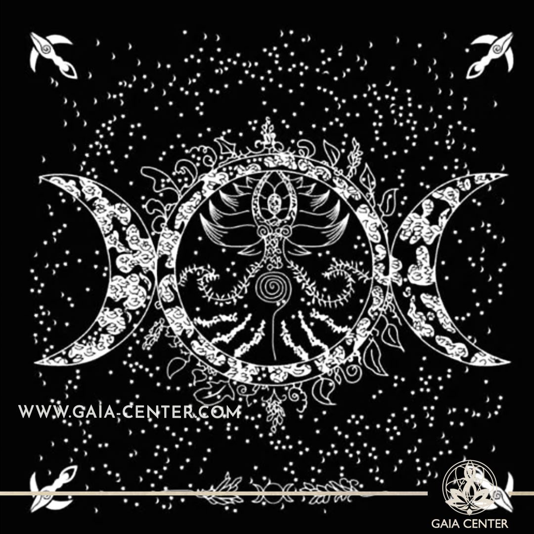 Altar Cloth – Moon Goddess Triple moon style 60x60cm is perfect for Tarot, Oracle cards, Intuitive Reading, Crystal and Rune placement.
