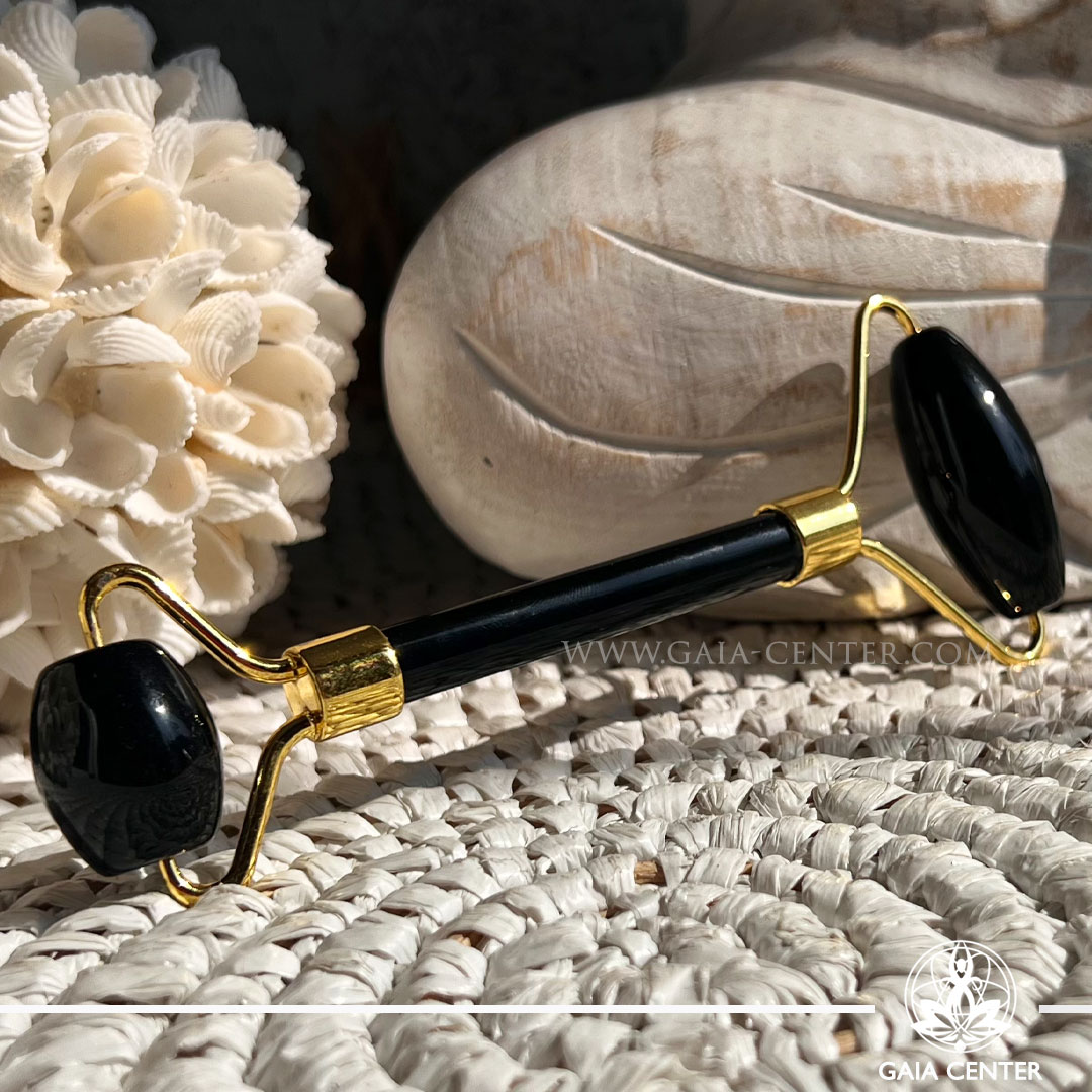 Crystal Face Roller made from Black Obsidian crystal at GAIA CENTER Crystal Shop in Cyprus.