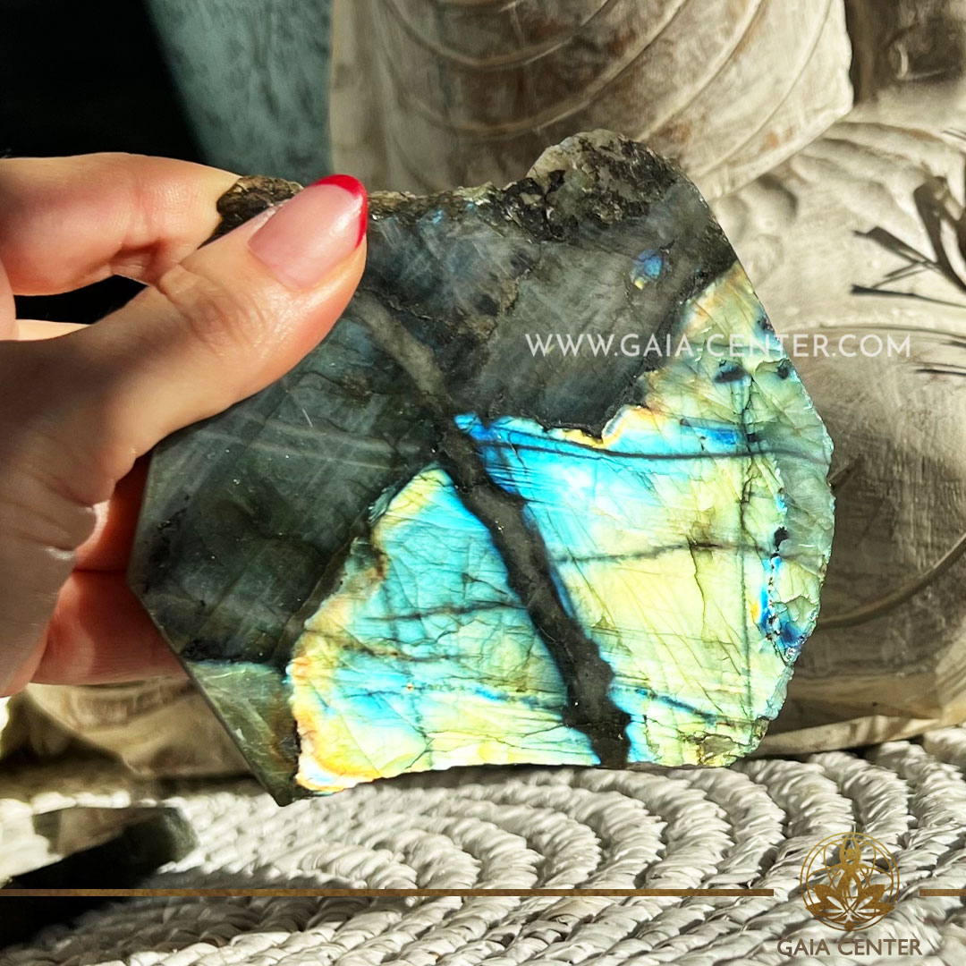 Labradorite Polished Stone Mineral Slab from Madagascar at GAIA CENTER Crystal Shop in CYPRUS. Crystal jewellery and crystal pendants at Gaia Center crystal shop in Cyprus. Order online top quality crystals, Cyprus islandwide delivery: Limassol, Larnaca, Paphos, Nicosia. Europe and Worldwide shipping.
