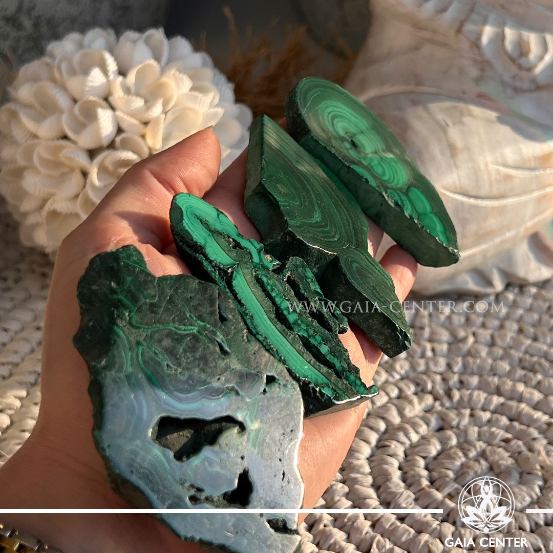 Malachite Slice Large | Congo – Kinshasa at GAIA CENTER | Crystal Shop in Cyprus.