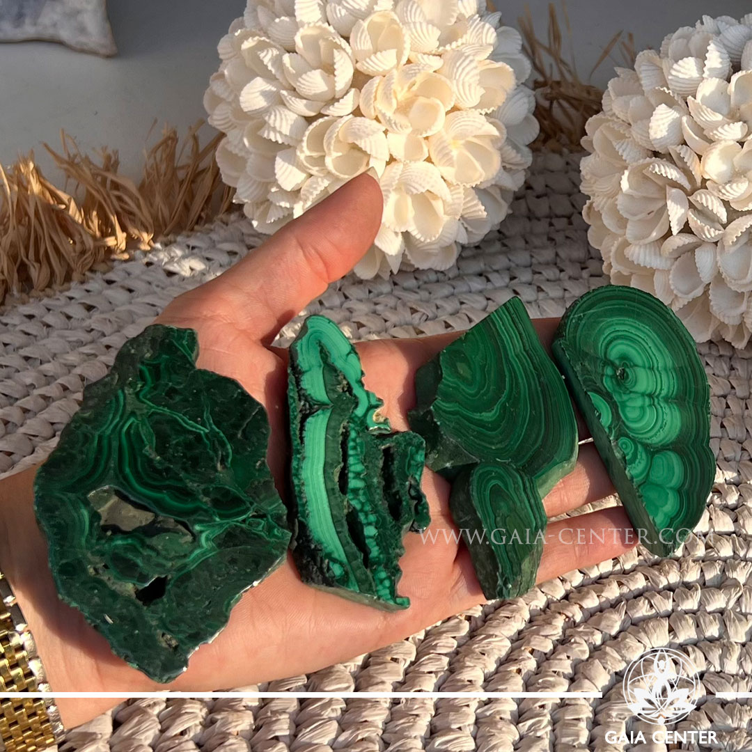 Malachite Slice Large | Congo – Kinshasa at GAIA CENTER | Crystal Shop in Cyprus. Malachite is known for promoting emotional healing, enhancing intuition, and providing protection. Explore the holistic benefits of these polished stones in meditation, energy work, or as a beautiful addition to your crystal collection. Selection of top quality crystals available at our crystal shop in Cyprus. Cyprus islandwide delivery: Limassol, Paphos, Larnaca, Nicosia