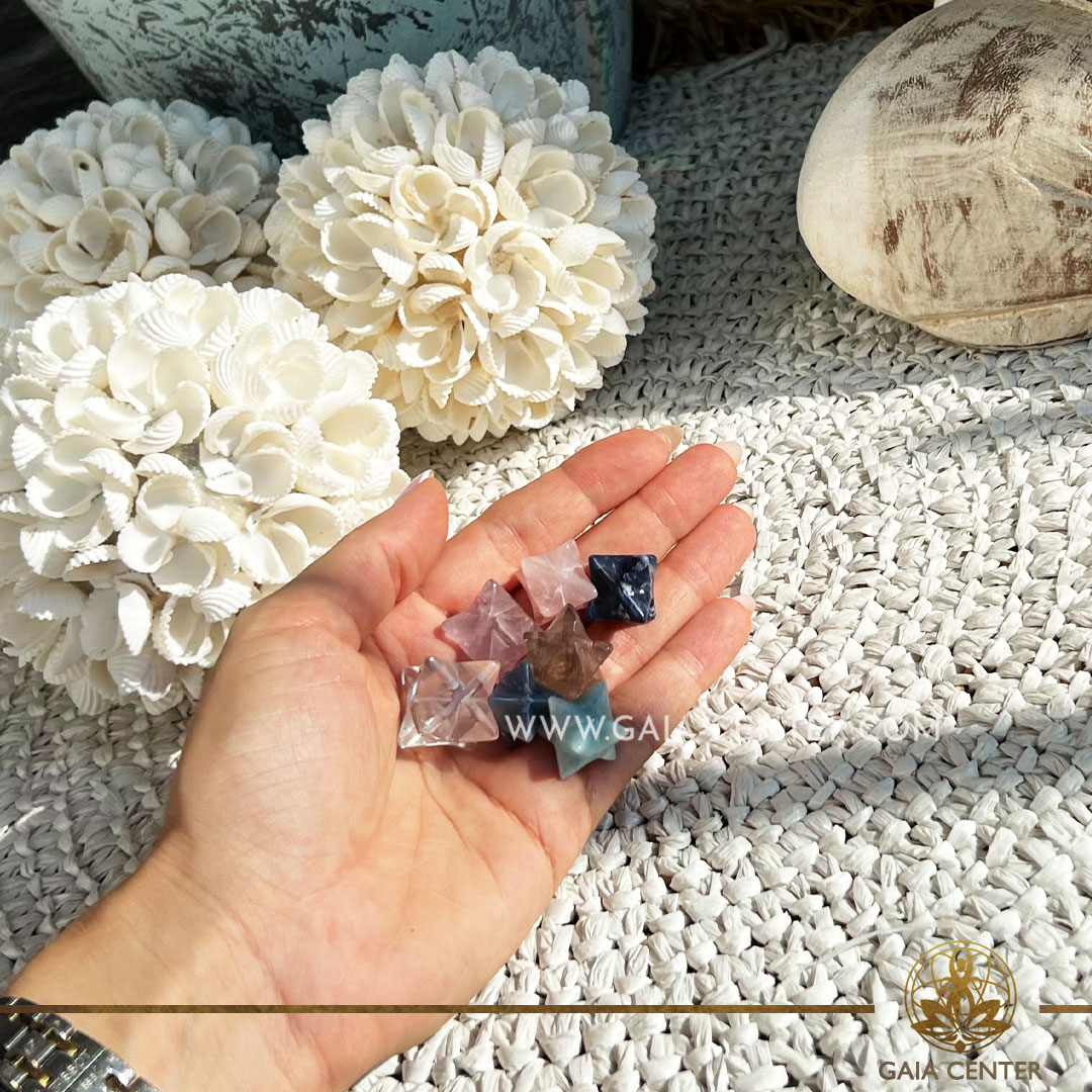 Introducing our Merkaba Crystal Star – a celestial marvel with profound spiritual significance. The Merkaba, derived from ancient Egyptian teachings, symbolizes the harmonious union of spirit and body, manifesting as a ‘Divine Light Vehicle.’ Crafted with precision, this crystal star is not just an exquisite piece of art but a powerful tool for spiritual growth and protection. Crystal Merkabas are available in: Smoky Quartz, Clear Crystal and Rose Quartz, Sodalite, Amethyst, Blue Quartz and Trolleite.
