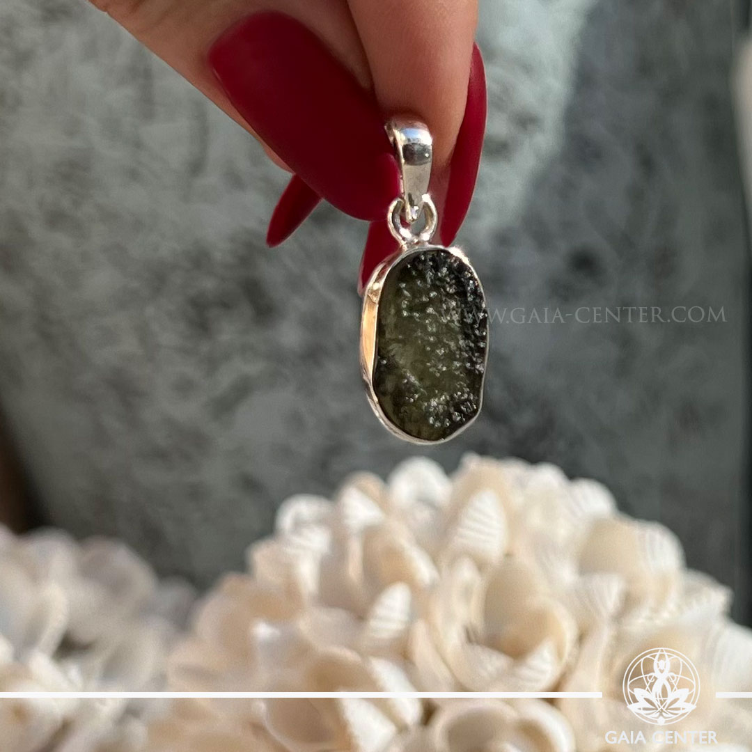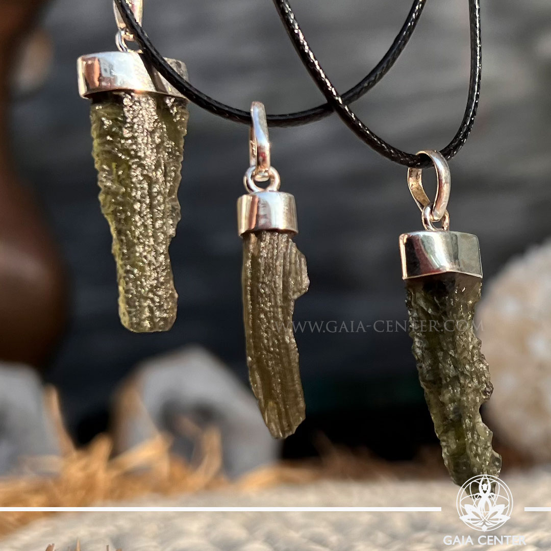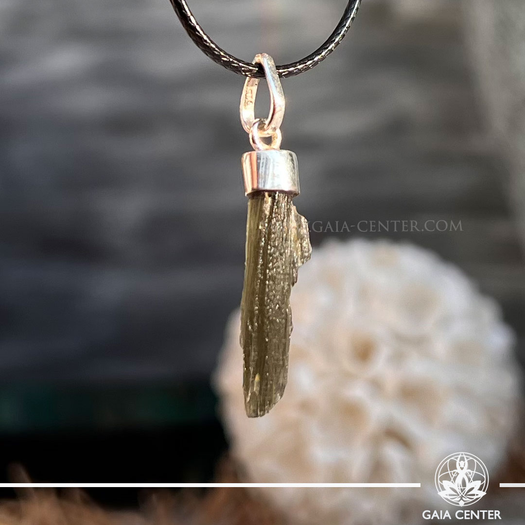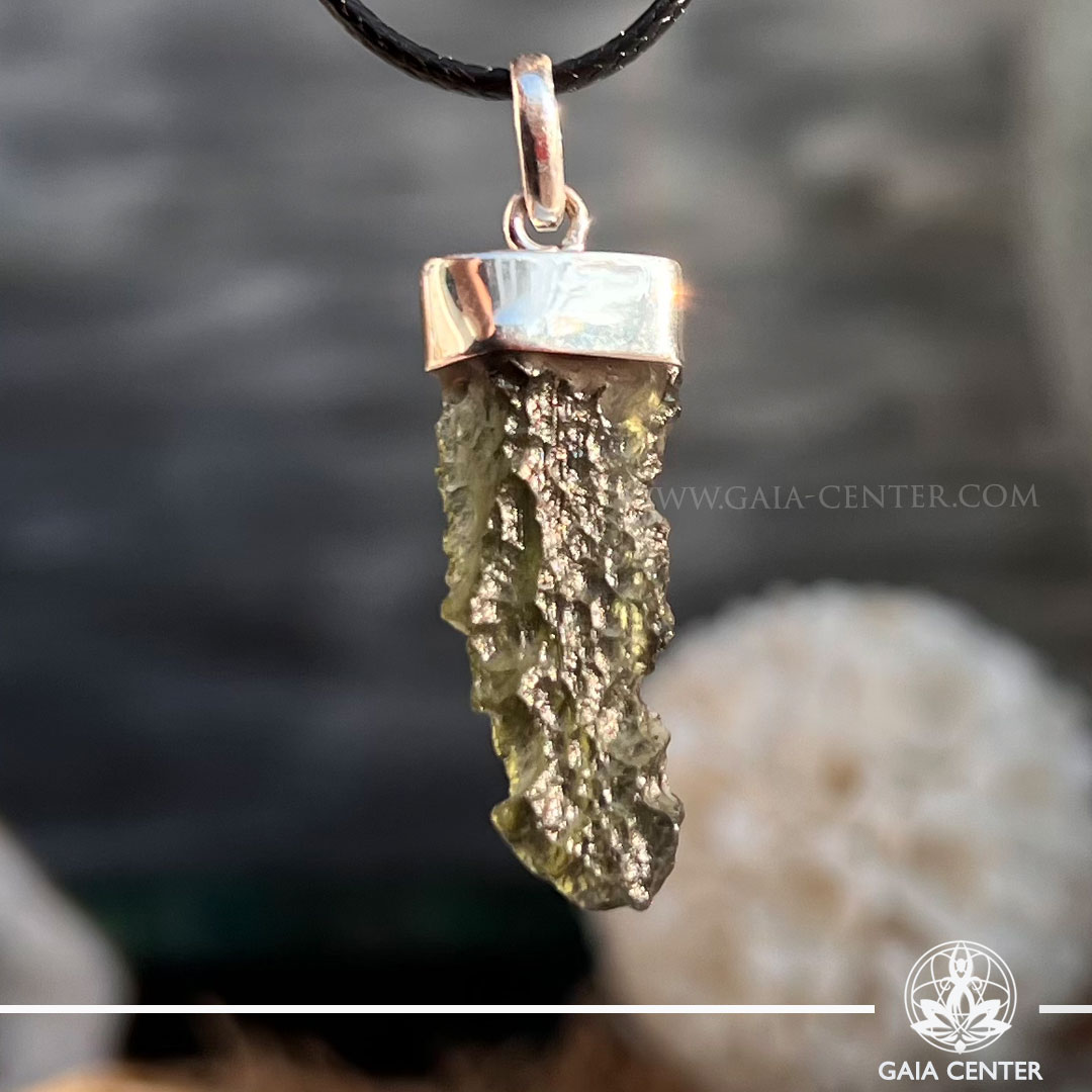 Moldavite Pendant Rough |925 Silver Bail| Chlum – Czech Republic. Crystal points, towers and obelisks selection at Gaia Center Crystal shop in Cyprus. Order online, Cyprus islandwide delivery: Limassol, Larnaca, Paphos, Nicosia. Europe and Worldwide shipping.