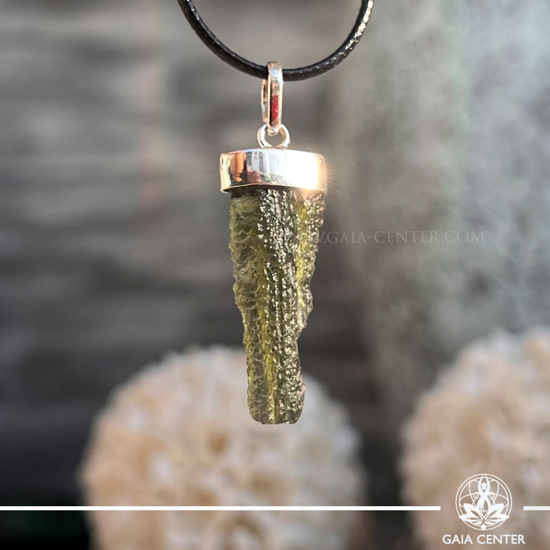 Moldavite Pendant Rough |925 Silver Bail| Chlum – Czech Republic. Crystal points, towers and obelisks selection at Gaia Center Crystal shop in Cyprus. Order online, Cyprus islandwide delivery: Limassol, Larnaca, Paphos, Nicosia. Europe and Worldwide shipping.