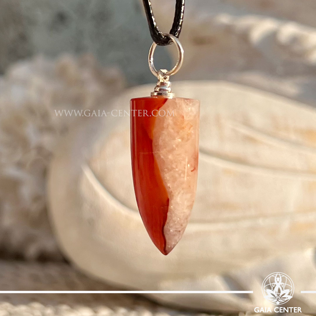 Carnelian Polished Point Pendant at Gaia Center Crystal shop in Cyprus.