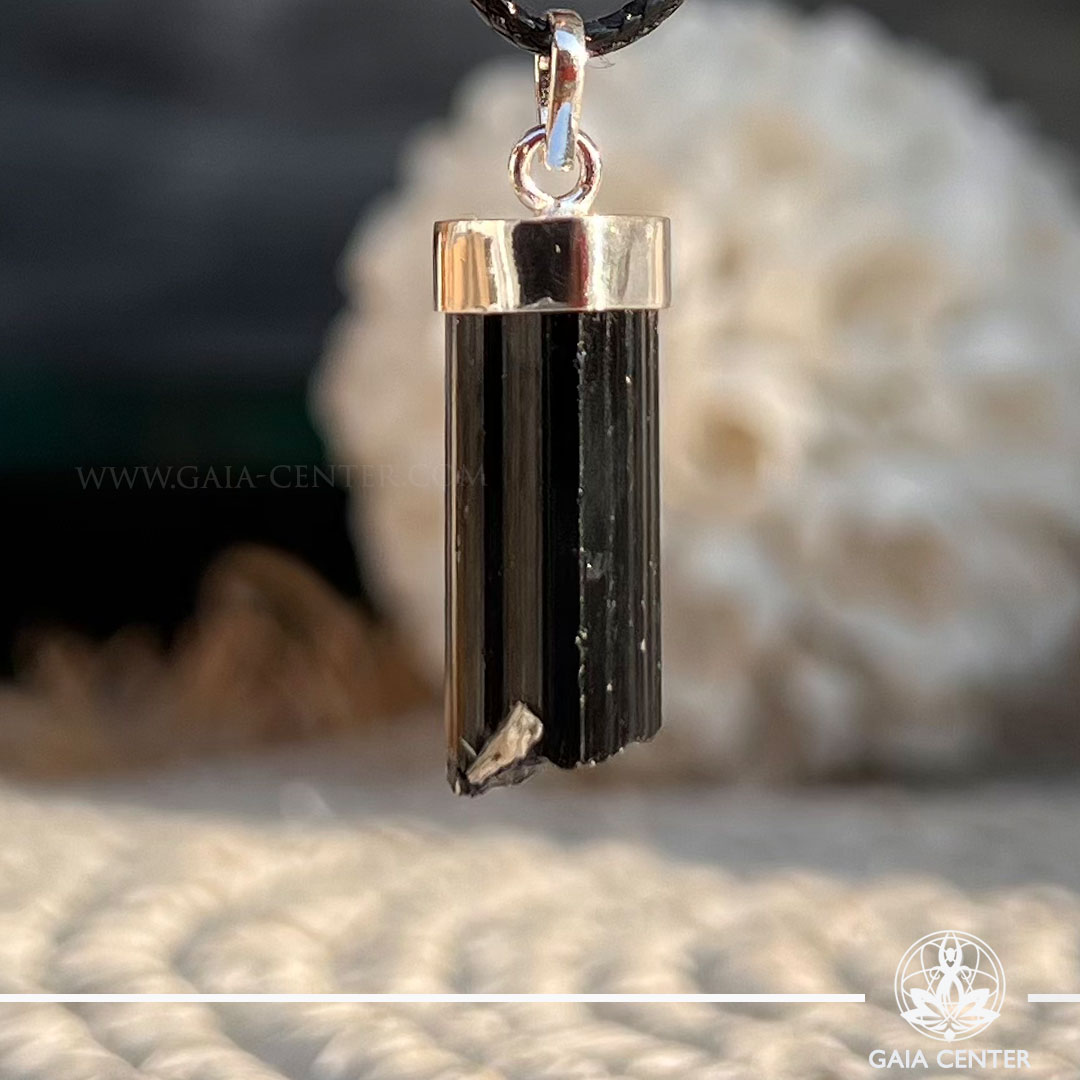 Rough Black Tourmaline Pendant |S925 Sterling Silver| at Gaia Center Crystal shop in Cyprus.