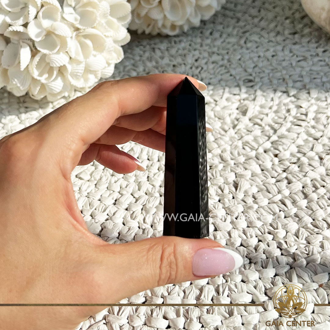 Black-Obsidian-crystal-top-point-polished-tower-65-70mm-2pic-Gaia-Center-Crystal-shop-Cyprus