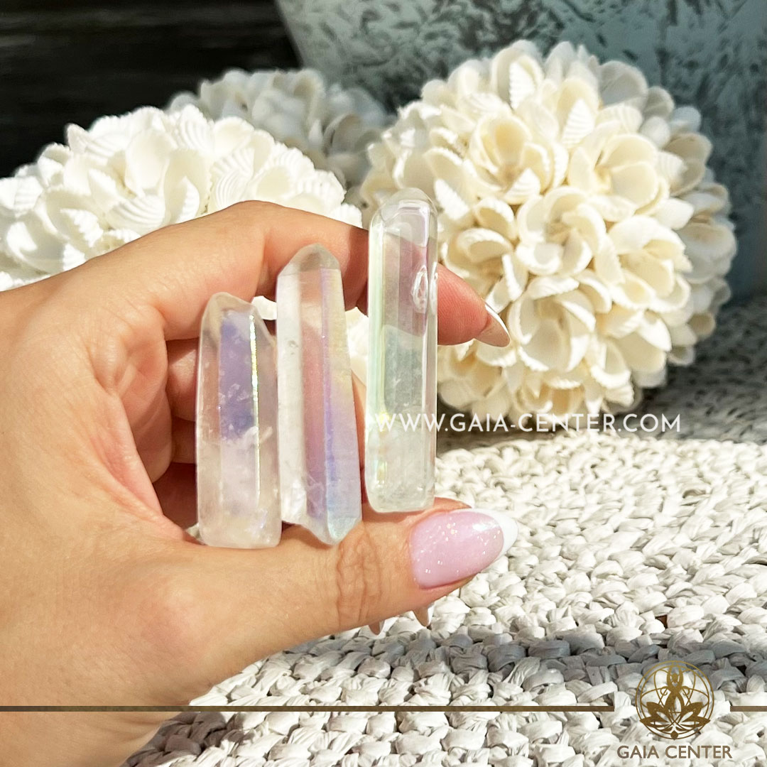Angel aura crystal polished flat point from USA at Gaia Center Crystal shop in Cyprus.