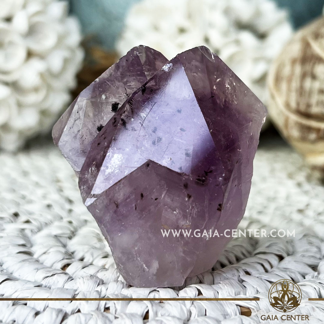 Amethyst Crystal natural polished point from Brazil. Crystal points, towers and obelisks selection at Gaia Center in Cyprus. Order online, Cyprus islandwide delivery: Limassol, Larnaca, Paphos, Nicosia. Europe and Worldwide shipping.