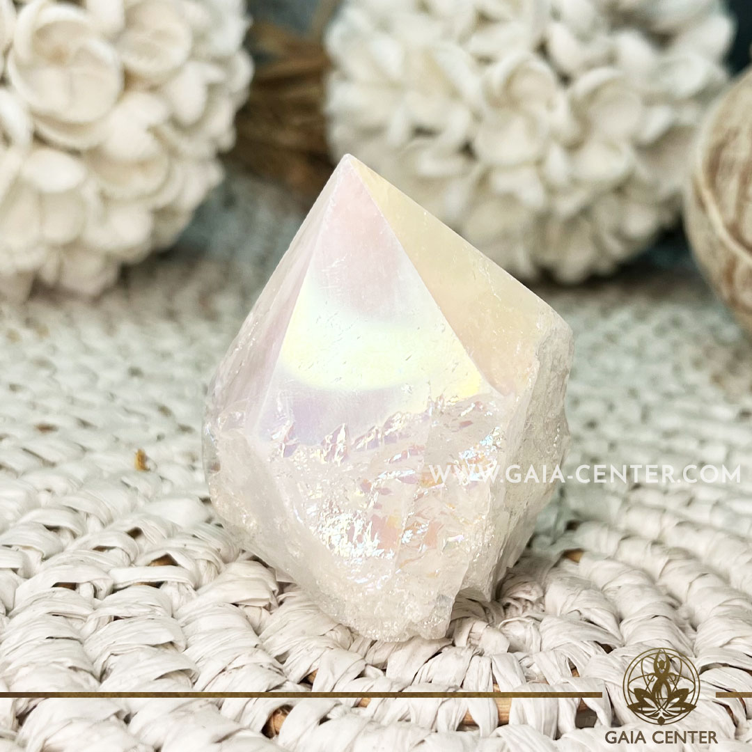 Read Morecrystal-snow-aura-quartz-cut-base-rought-polished-point-60mm-Gaia-Center-Crystal-shop-Cyprus