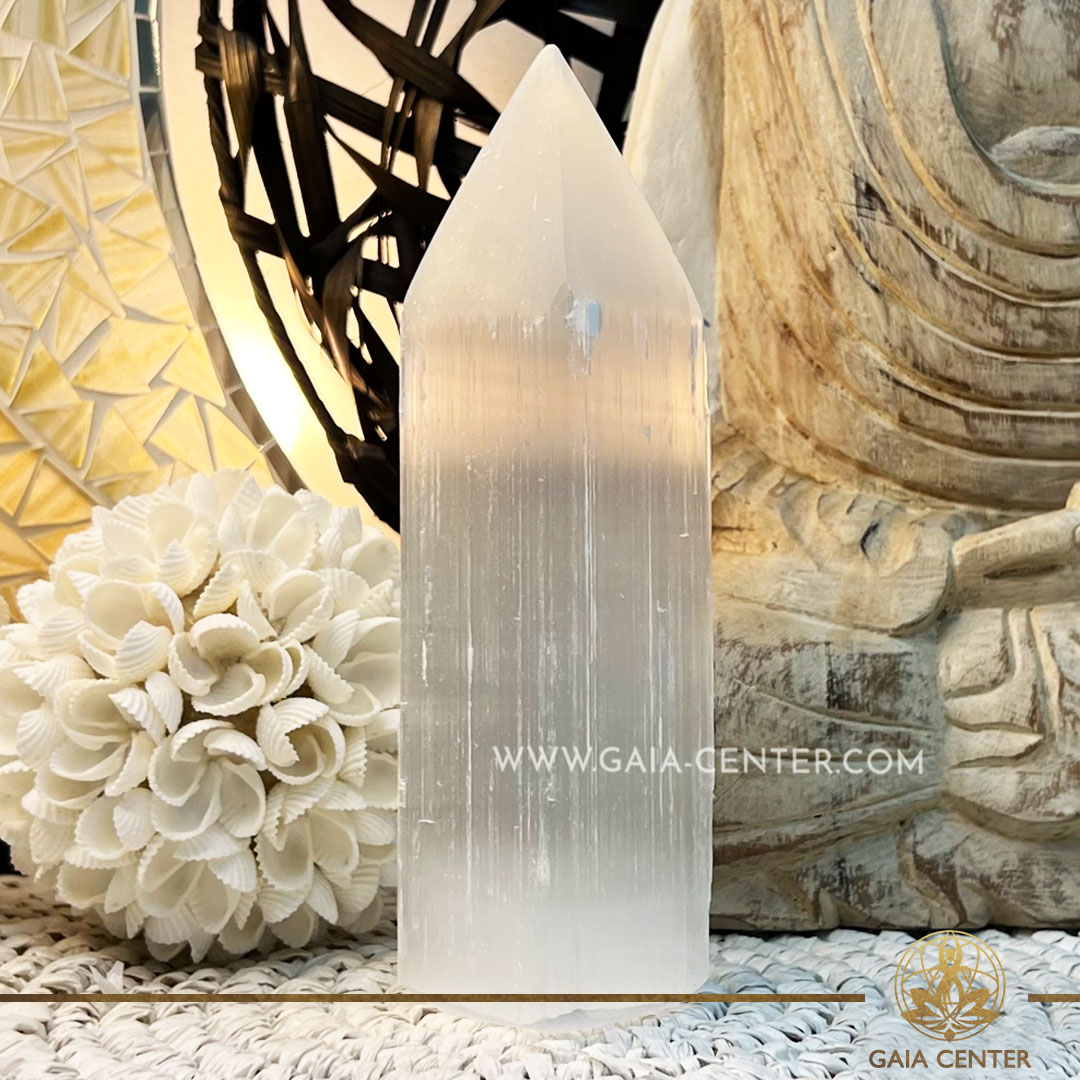 Selenite Pencil Point Tower XL |20cm| at Gaia Center Crystal shop in Cyprus.