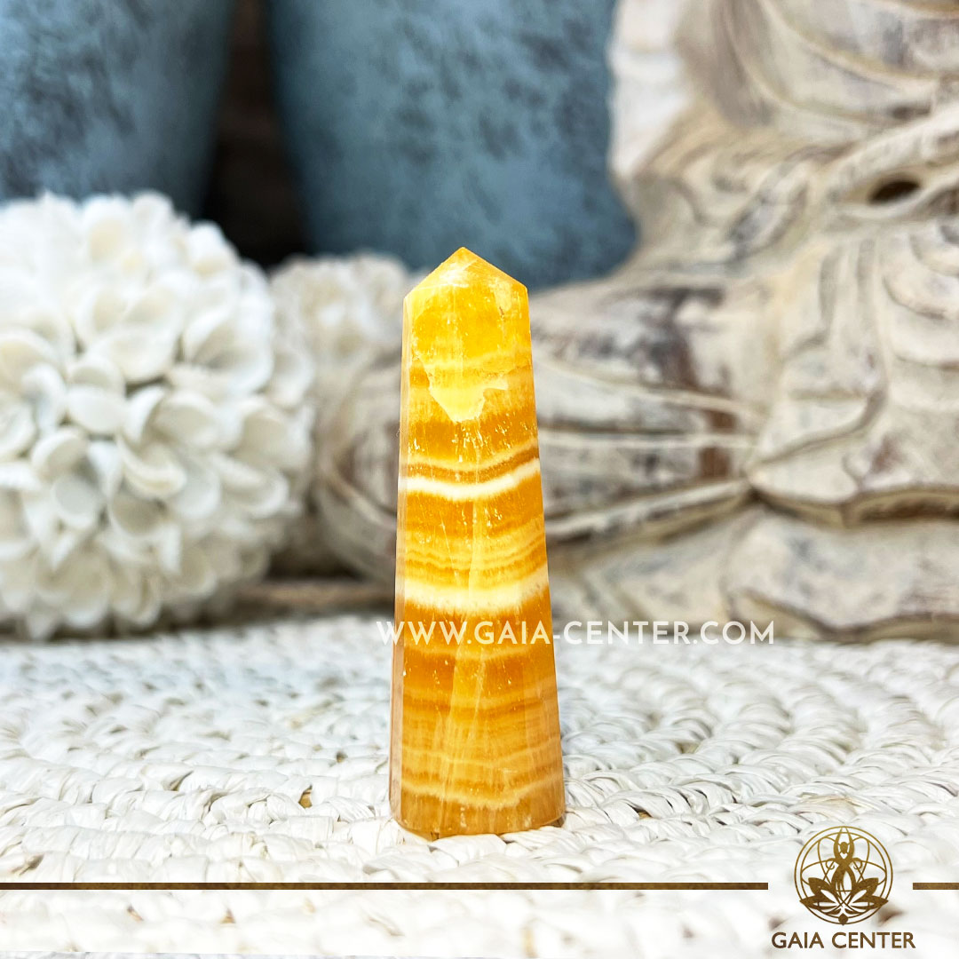 Crystal Obelisk polished point tower Yellow Fluorite. Crystal points, towers and obelisks selection at Gaia Center Crystal Shop in Cyprus. Order online, Cyprus islandwide delivery: Limassol, Larnaca, Paphos, Nicosia. Europe and Worldwide shipping.