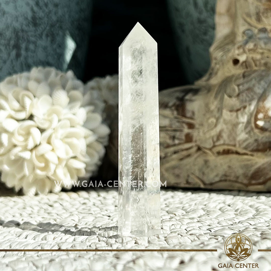 Clear-rock-crystal-quartz-top-point-polished-tower-95-100mm-4pic-Gaia-Center-Crystal-shop-Cyprus