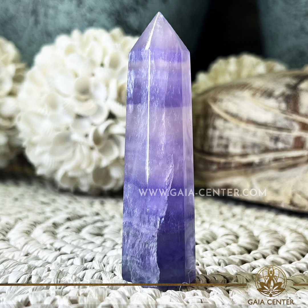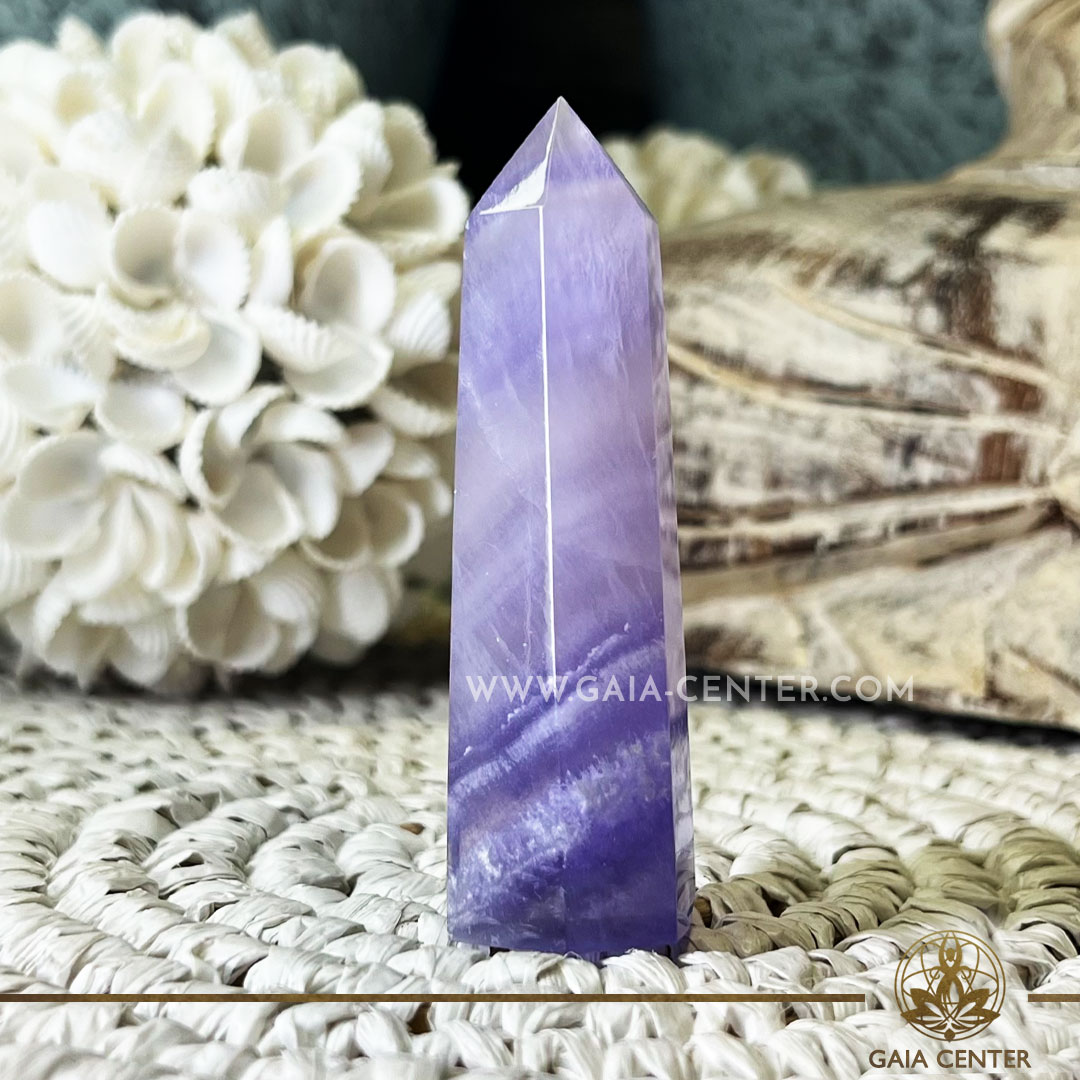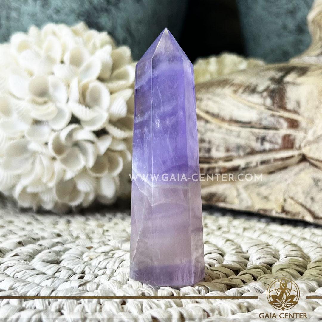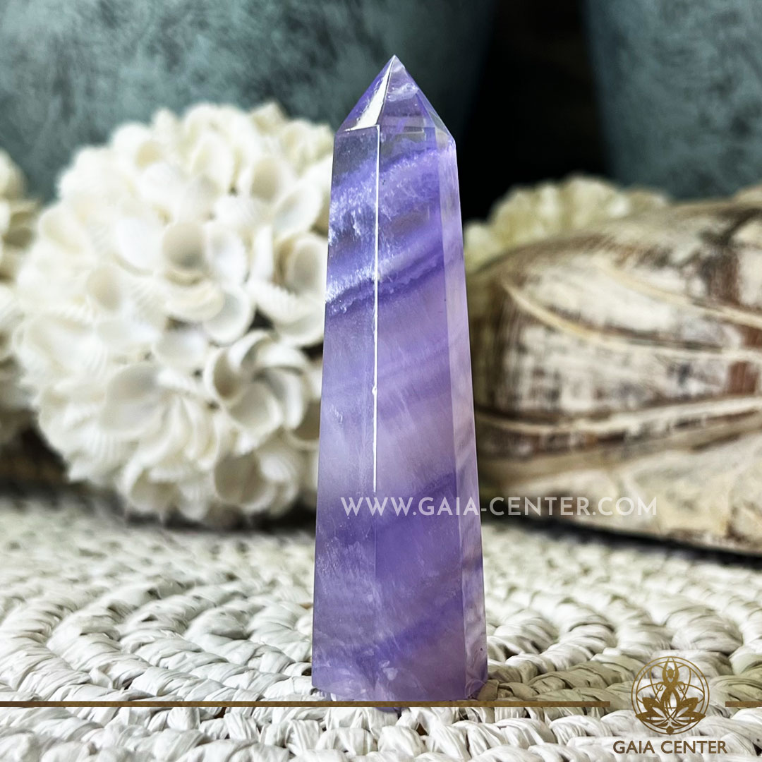 Purple Fluorite Crystal Polished Tower point Obelisk. Crystal points, towers and obelisks selection at Gaia Center Crystal Shop in Cyprus. Order crystals online, Cyprus islandwide delivery: Limassol, Larnaca, Paphos, Nicosia. Europe and Worldwide shipping.