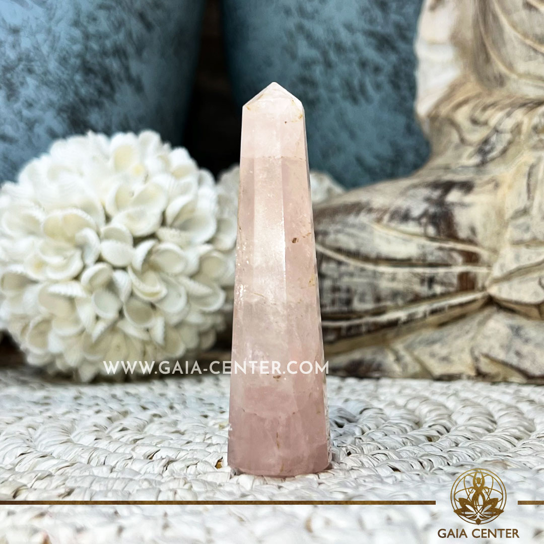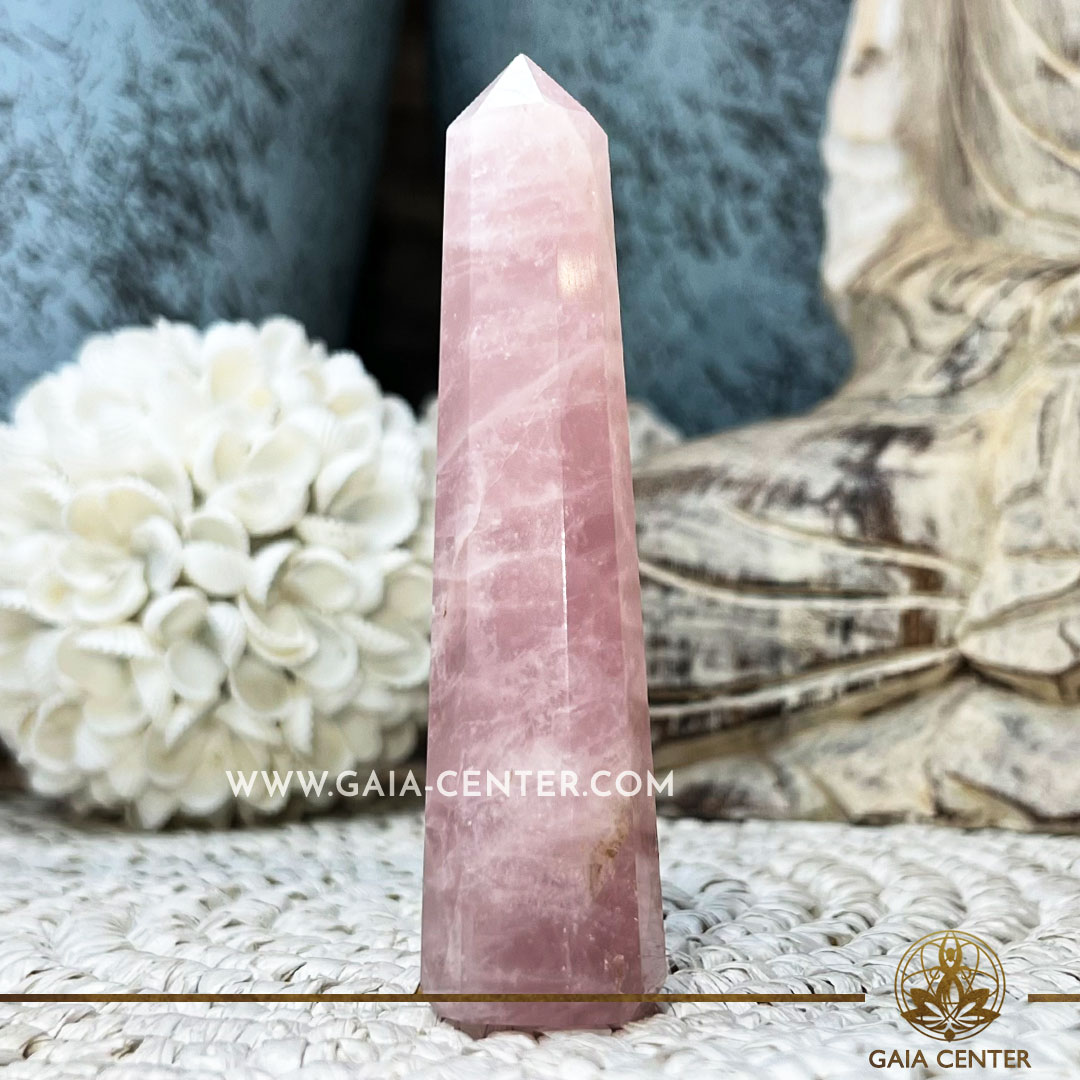 Crystal Obelisk polished point tower Rose Quartz. Crystal points, towers and obelisks selection at Gaia Center in Cyprus. Order online, Cyprus islandwide delivery: Limassol, Larnaca, Paphos, Nicosia. Europe and Worldwide shipping.