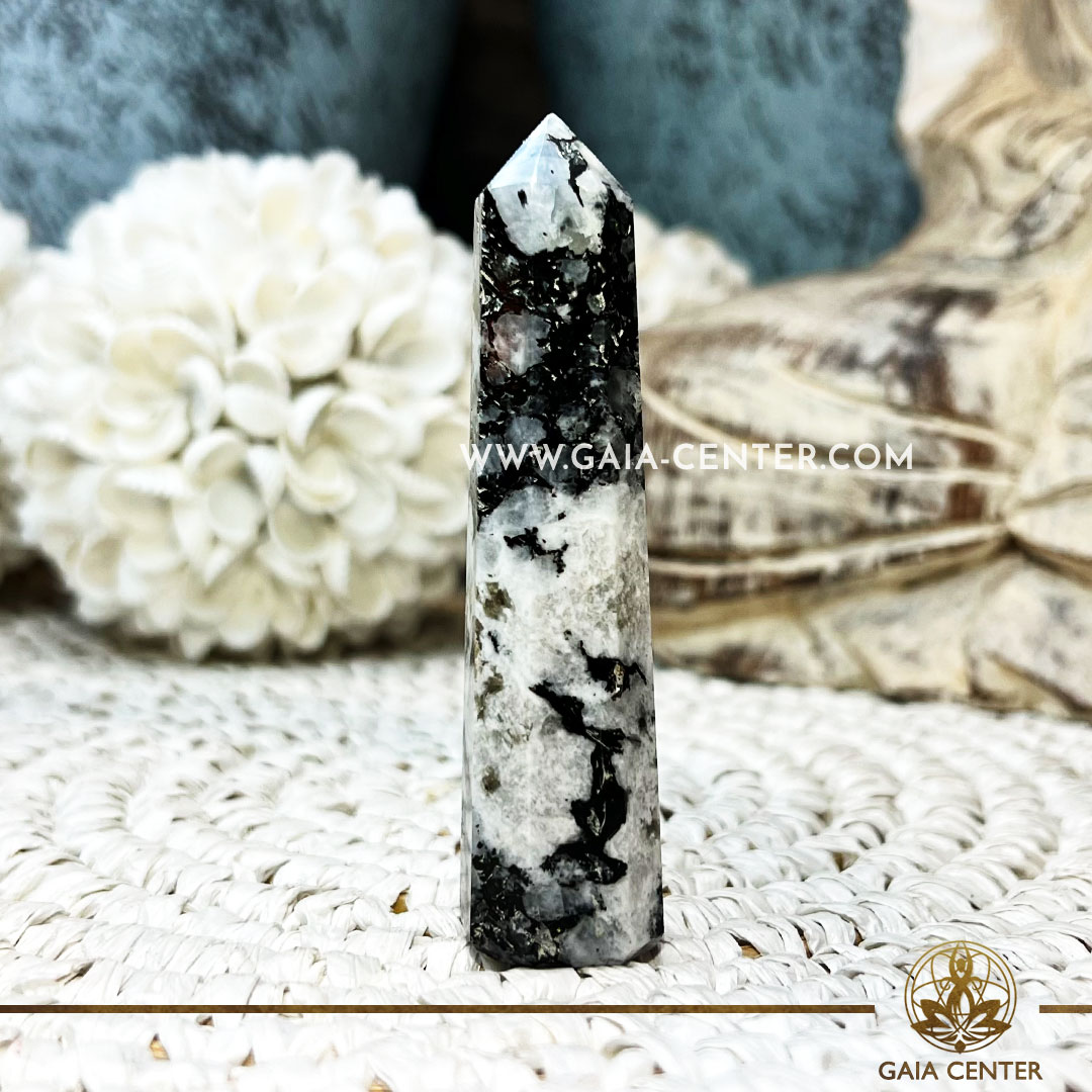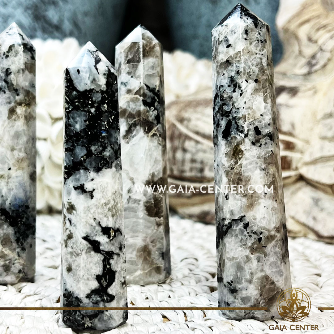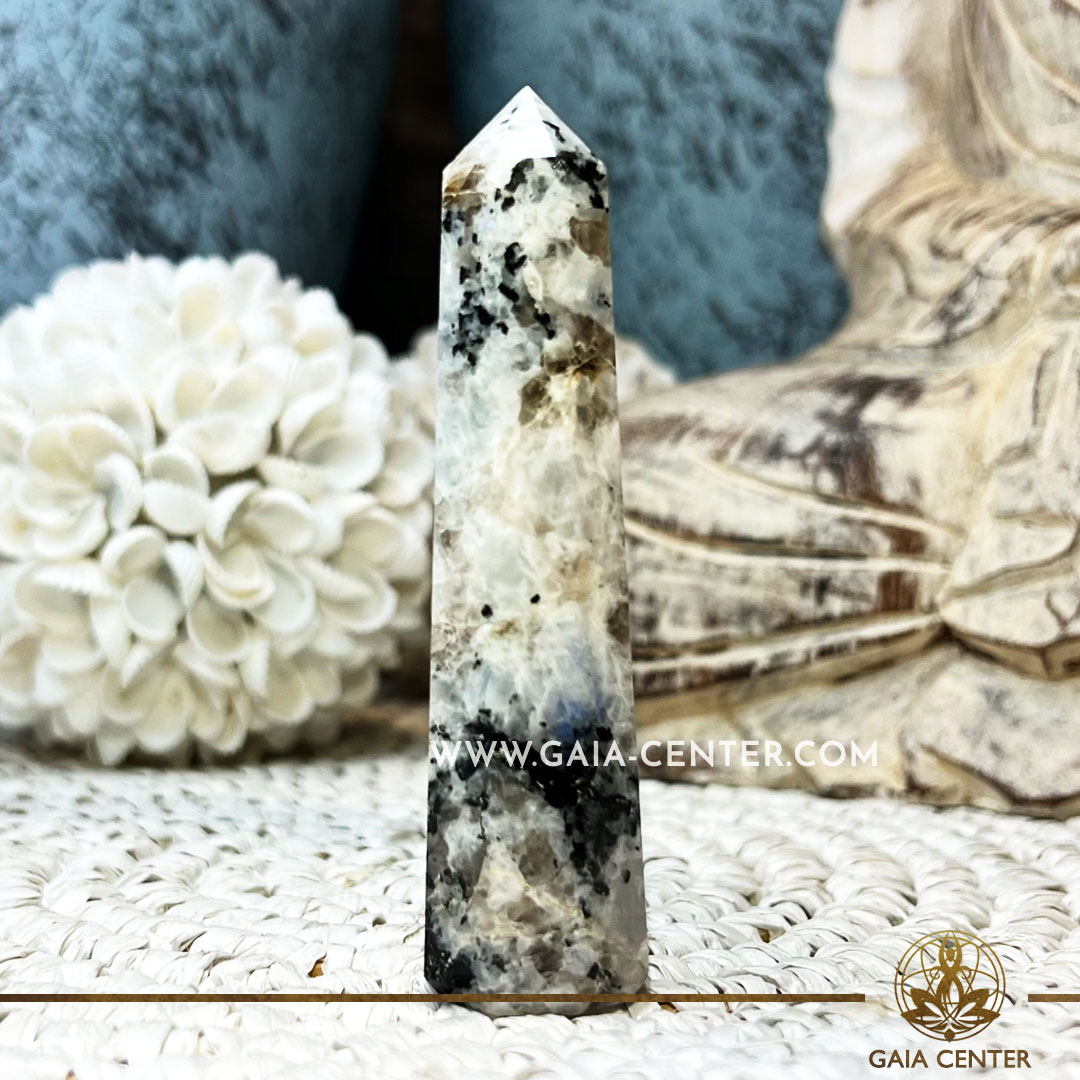 Rainbow Moonstone Crystal Tower. Crystal points, towers and obelisks selection at Gaia Center in Cyprus. Order online, Cyprus islandwide delivery: Limassol, Larnaca, Paphos, Nicosia. Europe and Worldwide shipping.