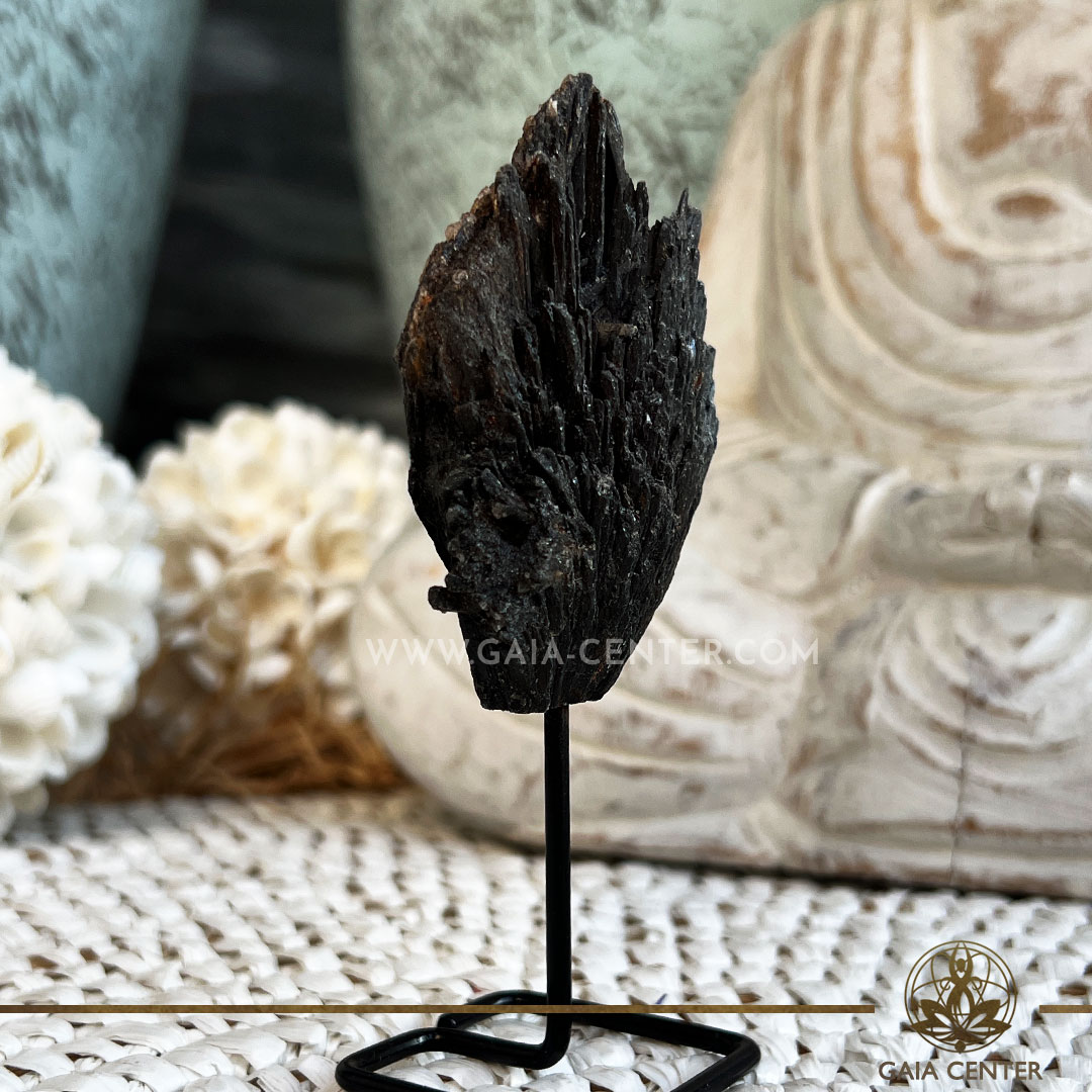 Read Morecrystal-black-kyanite-on-pin-metal-stand-Gaia-Center-Crystal-online-shop-in-Cyprus