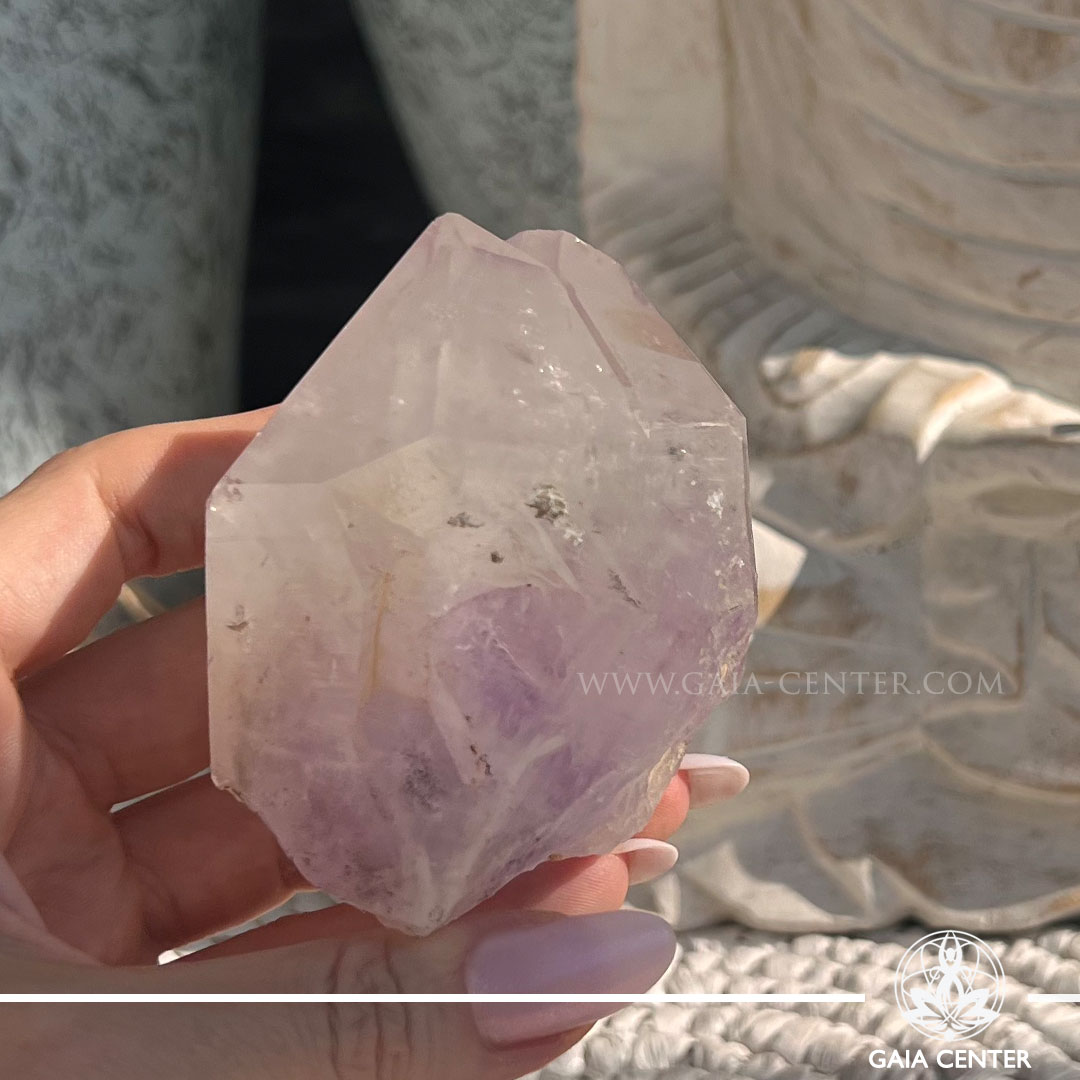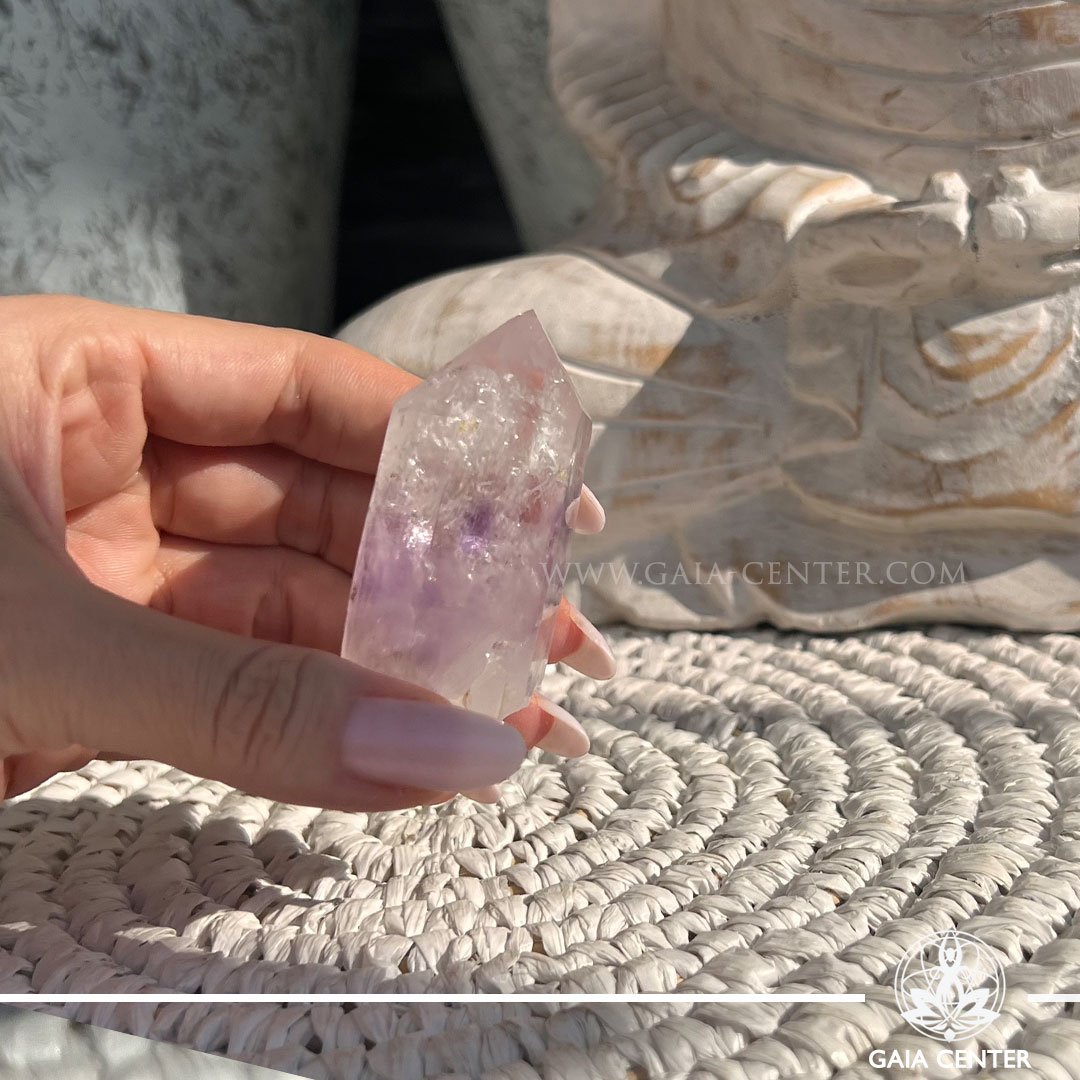 Discover the enchanting Amethyst Coated Phantom Point Crystals at Gaia Center Crystal Shop in Cyprus. These unique specimens feature mesmerizing phantom inclusions, symbolizing personal growth and transformation. Renowned for their spiritual properties, they enhance intuition and provide calming energies. Visit Gaia Center to explore these captivating crystals and elevate your collection.