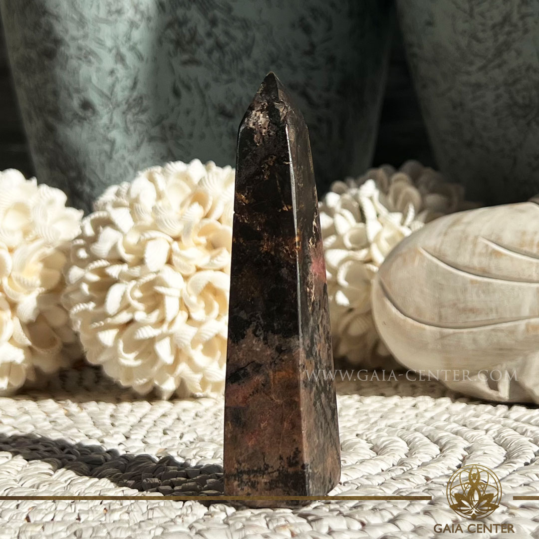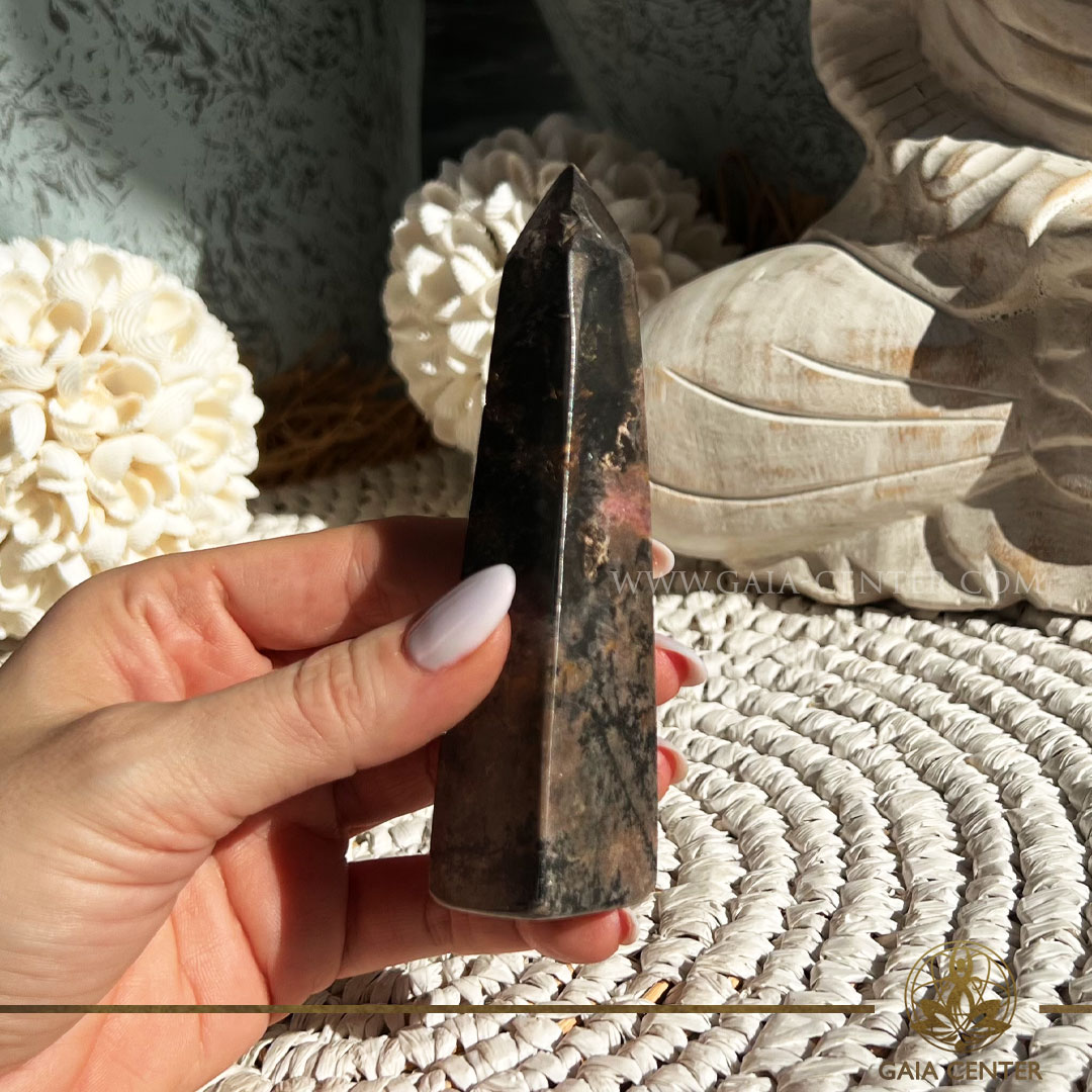 Read Morerhodonite-crystal-point-polished-tower-obelisk-120mm-3pic-Gaia-Center-Crystal-shop-in-Cyprus