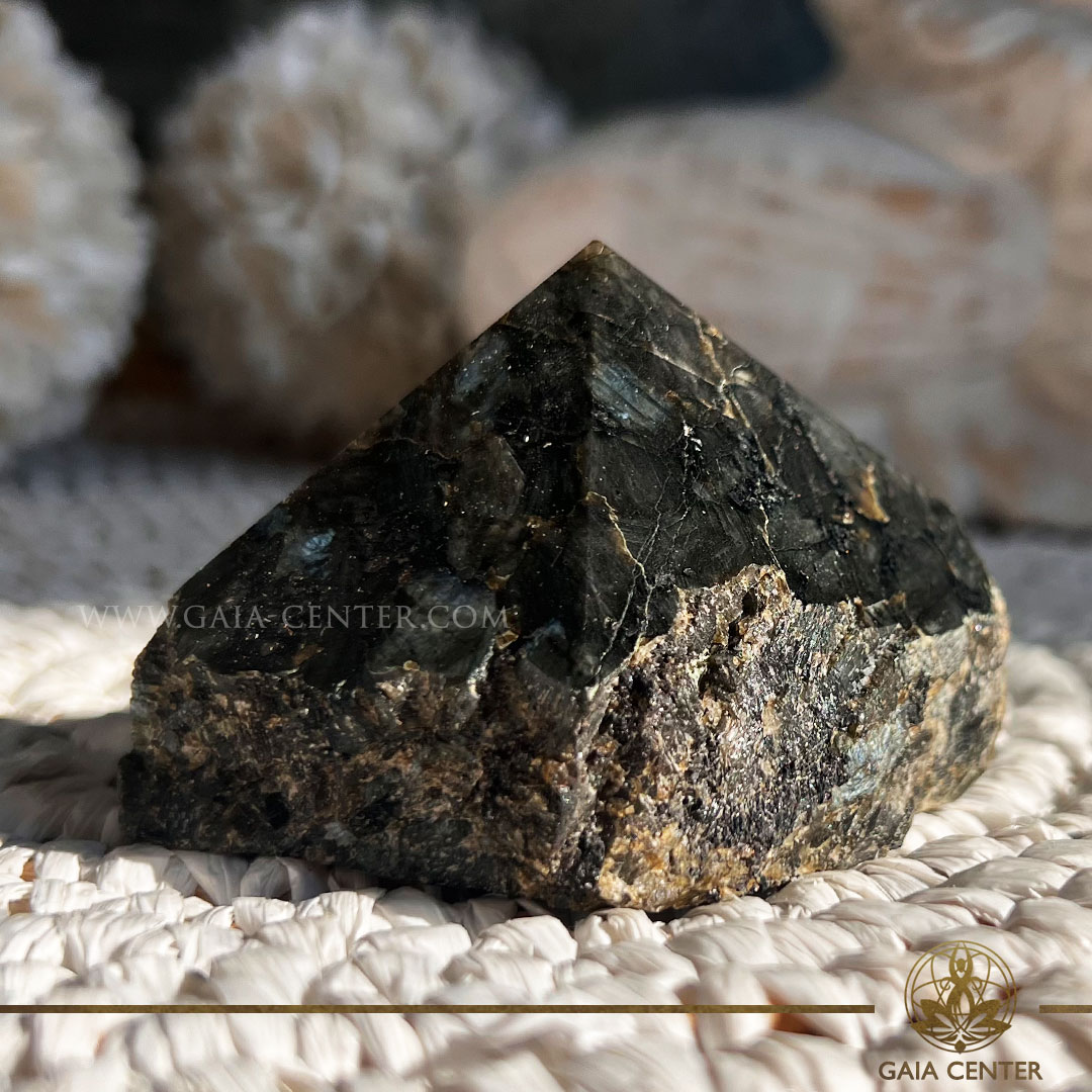 Larvikite Crystal Pyramid – Polished at Gaia Center Crystal shop in Cyprus.