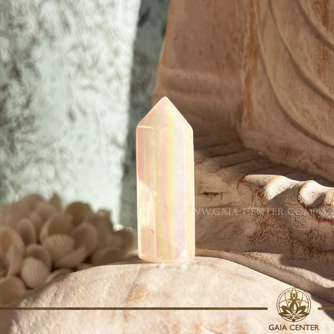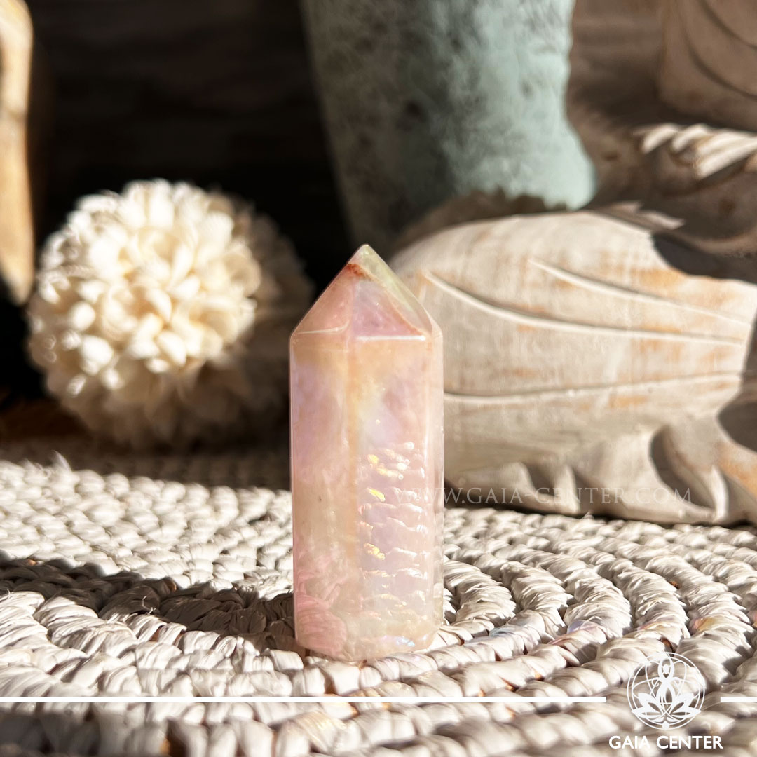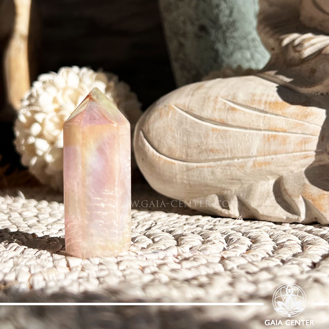 Rose Aura Quartz Crystal Polished Point at Gaia Center Crystal shop in Cyprus.