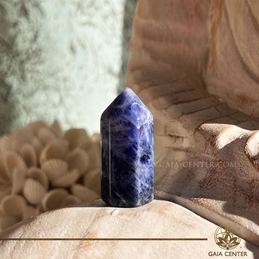Blue sodalite Crystal Polished Point at Gaia Center Crystal shop in Cyprus.