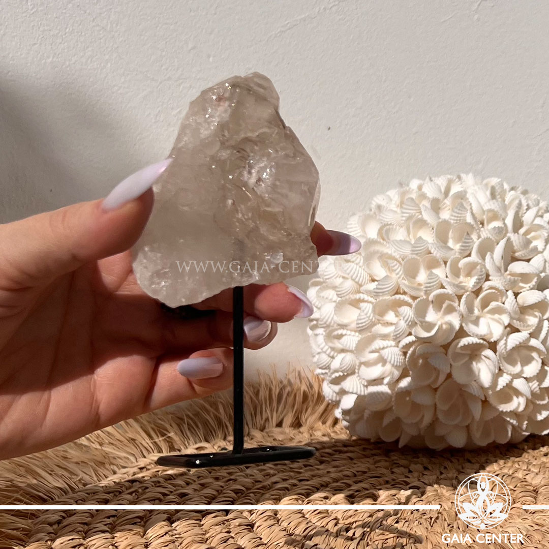 lligator Quartz crystal on display pin from Madagascar with stepped, textured quartz formations | GAIA CENTER Crystal shop in Cyprus.