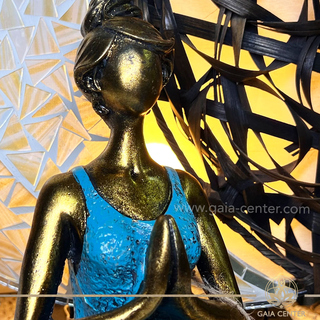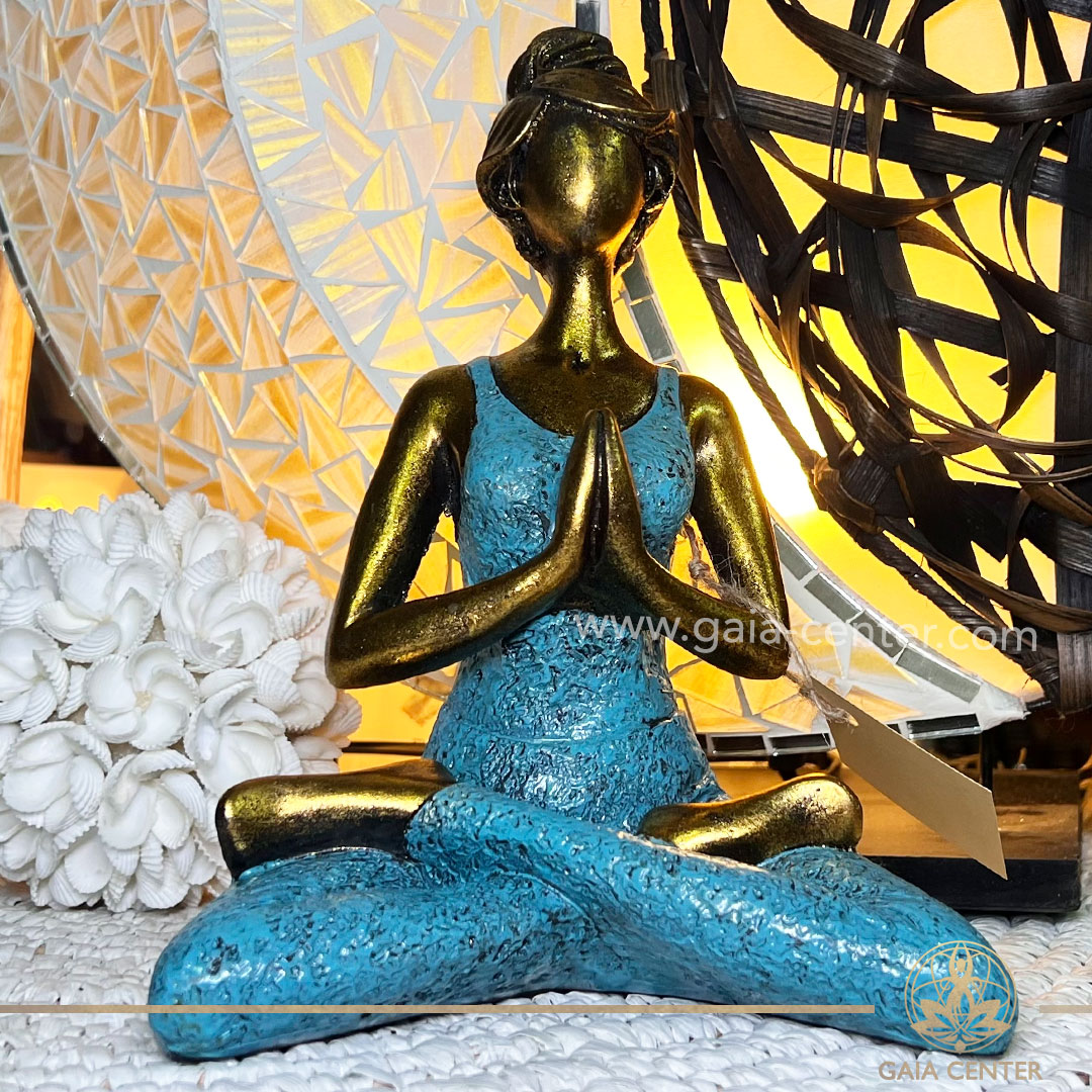 Yoga-Lady-Meditation-Pose-Statue-Gold-Turquoise-color-2pic-Gaia-Center-Crystal-Shop-in-Cyprus