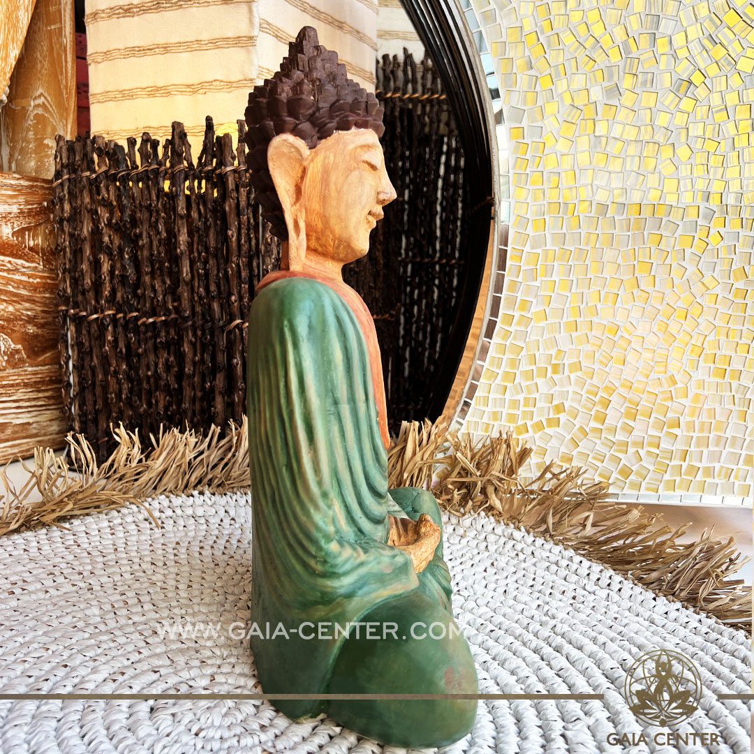 Buddha-Statue-teakwood-green-gold-matt-handmade-meditating-spiritual-decor-Gaia-Center-Cyprus-3