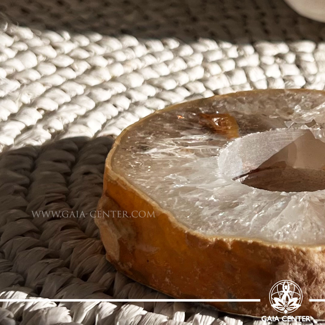White natural Agate Slab – Crystal T-light Holder from Brazil at GAIA CENTER Crystal Shop in Cyprus.