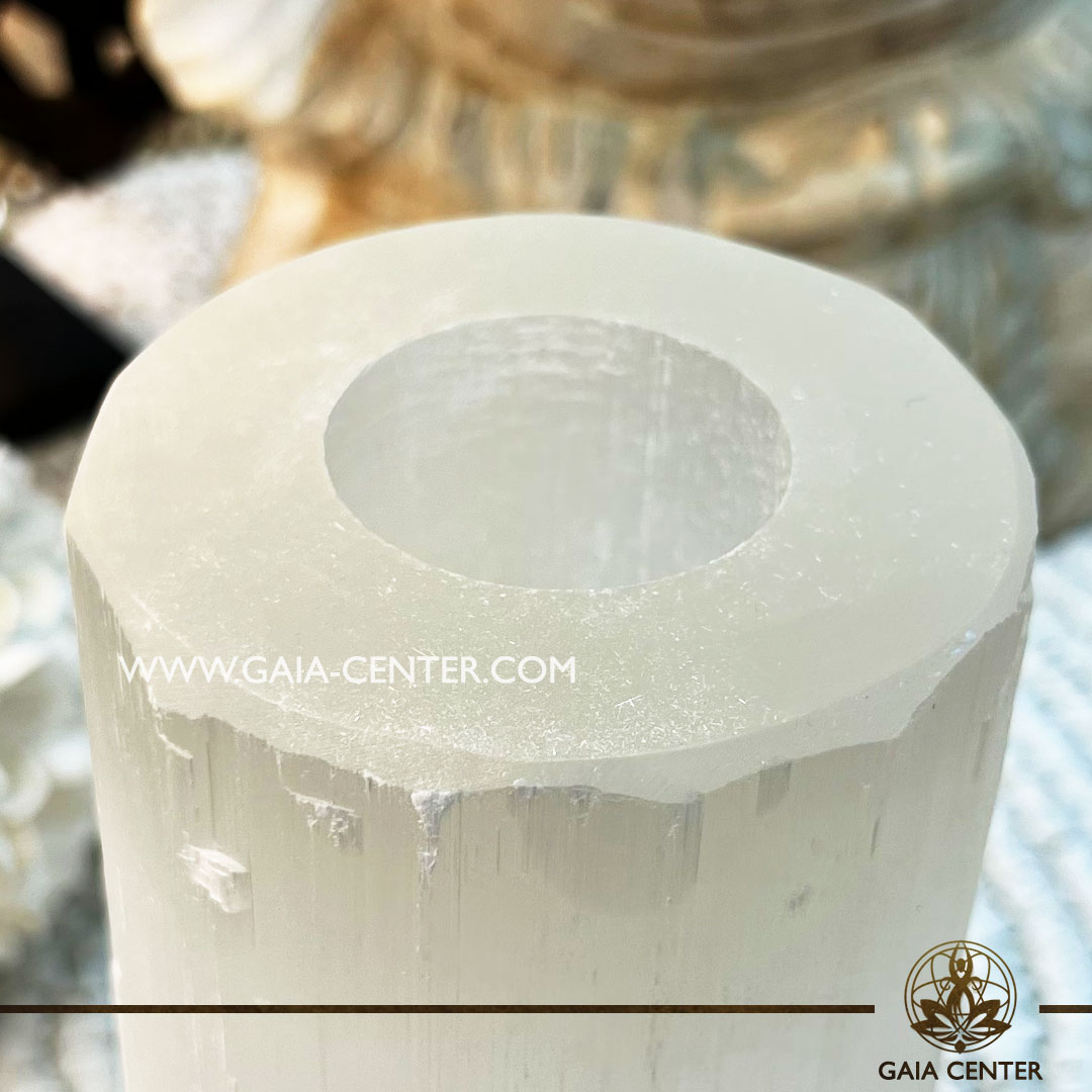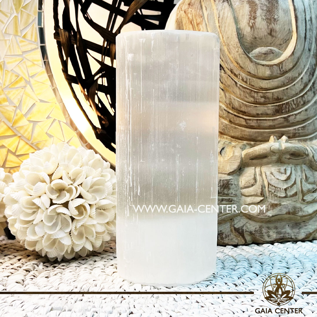 Selenite Divine Cylinder Candle Holder 20cm at Gaia Center Crystal shop in Cyprus.