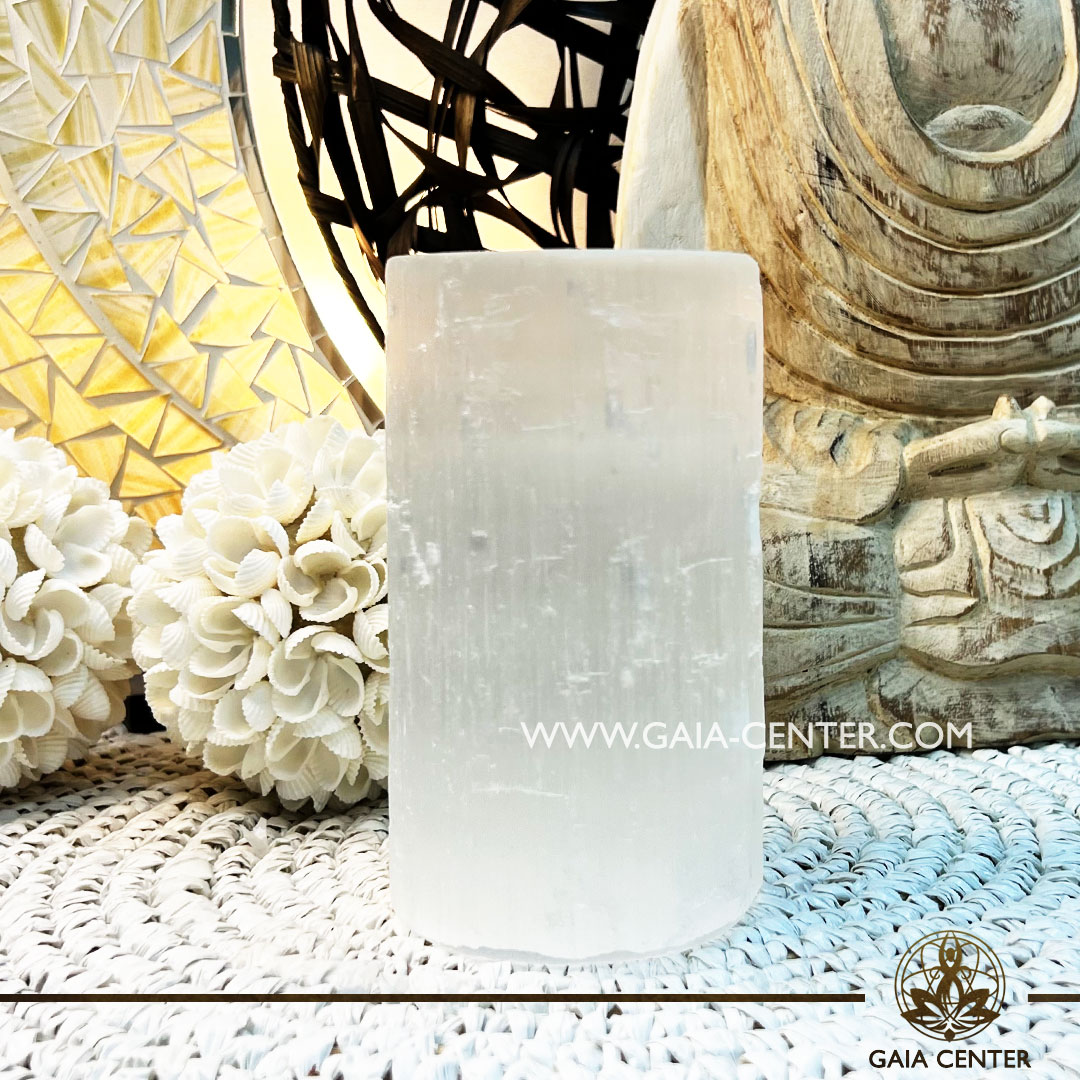 Selenite Divine Cylinder Candle Holder |15cm| at Gaia Center Crystal shop in Cyprus.