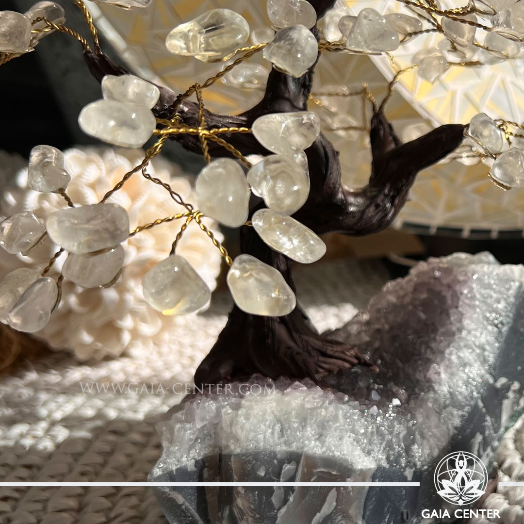 Rock Quartz Bonsai Tree with Amethyst crystal base from Gaia Center Crystal Shop in Cyprus.