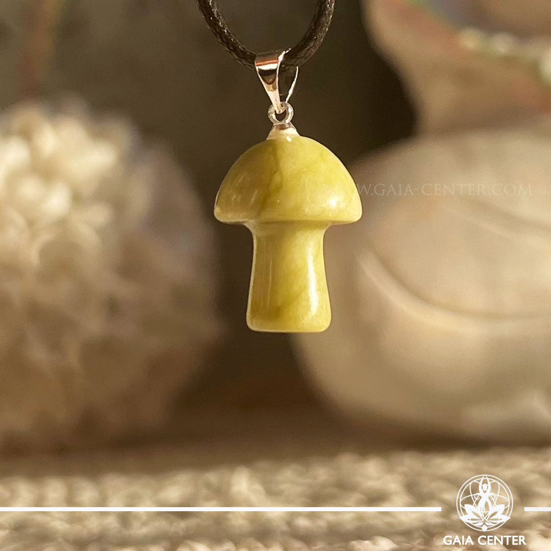 At Gaia Center Crystal Shop in Cyprus, we offer a Serpentine Mushroom-Shaped Crystal Pendant. Serpentine mushroom-shaped pendant is a talisman for grounding, spiritual awakening, and personal growth. It is believed to support emotional healing and protect the wearer from negative energies, all while symbolizing a harmonious connection to nature and the Earth. You can visit our shop to see this pendant in person or order it online through our website.