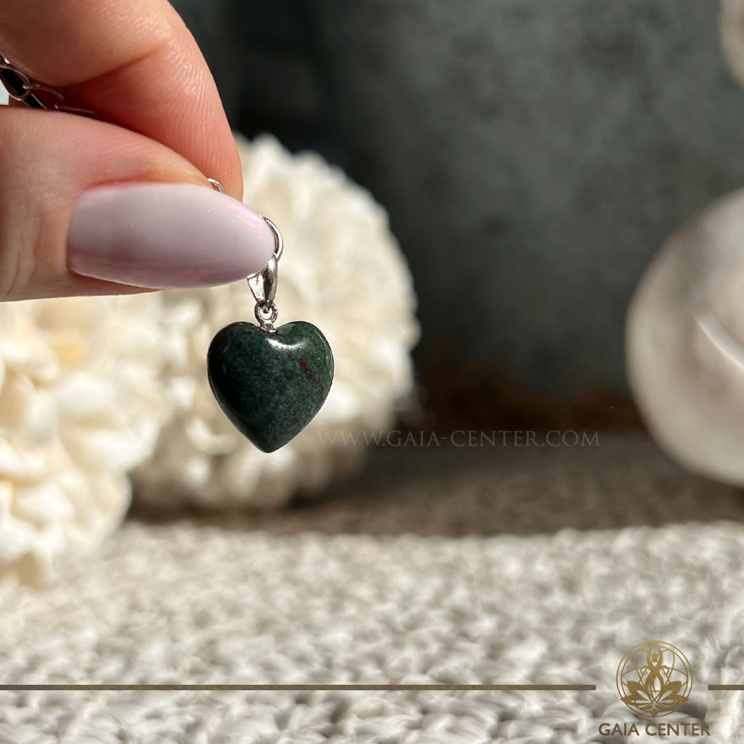 Dragon’s Blood Jasper Stone Hear Pendant | Stirling Silver Bail at Gaia Center Crystal shop in Cyprus.