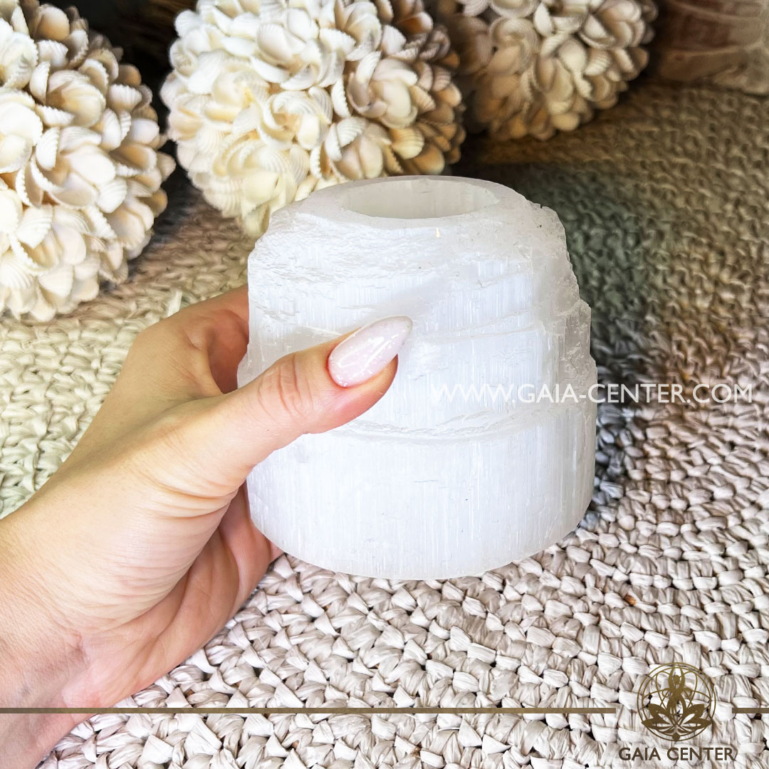 Selenite Crystal Iceberg Tea Light |XL size| from Morocco at Gaia Center Crystal shop in Cyprus.