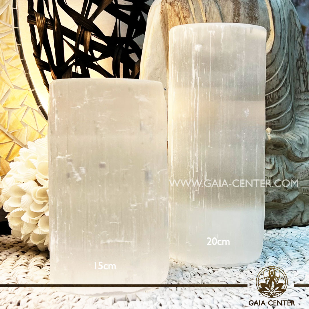 Selenite Divine Cylinder Candle Holder |15cm| at Gaia Center Crystal shop in Cyprus.