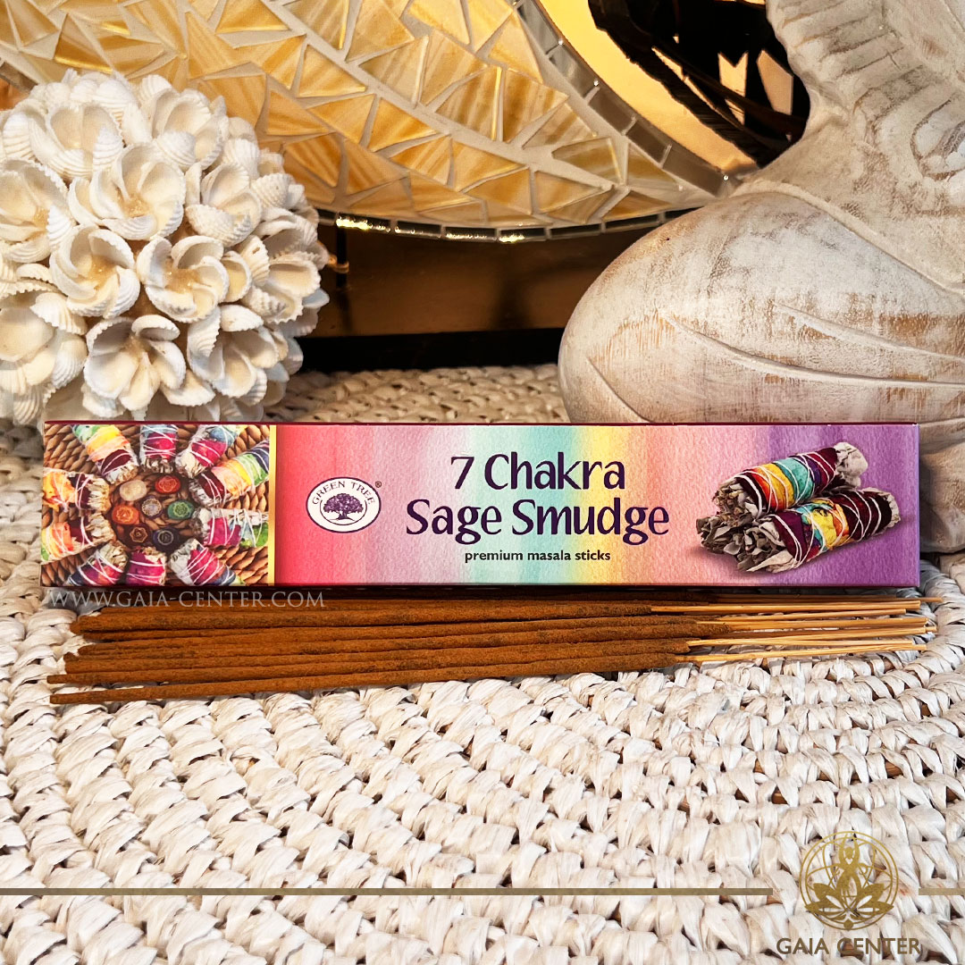 Green Tree 7 Chakra Sage Smudge Natural Incense 15 grams at GAIA CENTER Crystals & Incense shop in Cyprus.