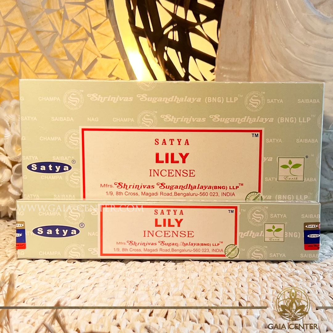 The enchanting fragrance of Satya Lily Incense Sticks, crafted for a soothing and floral aromatherapy experience. Perfect for meditation, relaxation, and spiritual cleansing. Available now at Gaia Center – Crystal & Incense Shop in Cyprus. Shop authentic Satya incense for a pure and calming ambiance