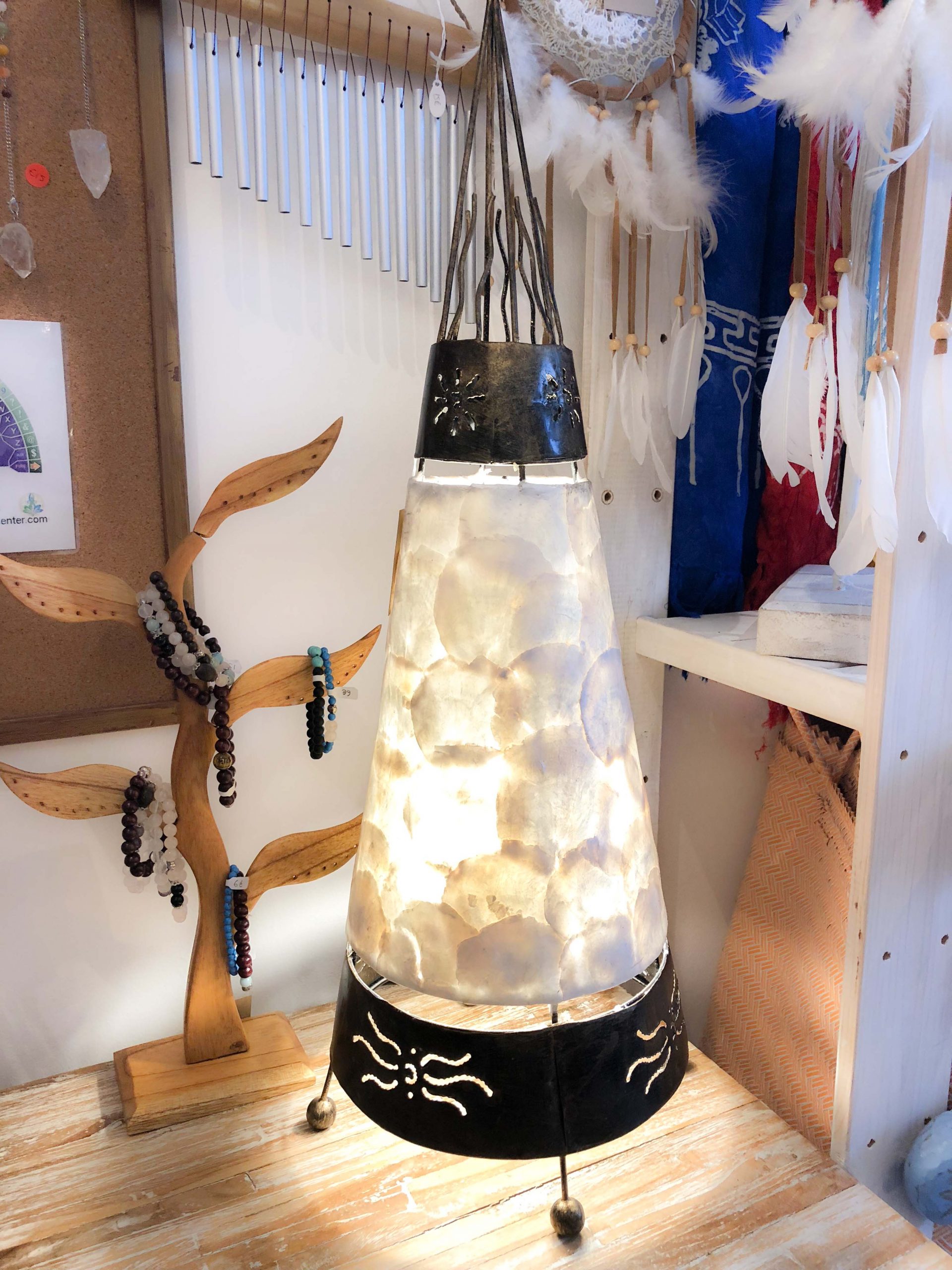 Natural sea shell decor lamp at Gaia Center in Cyprus.