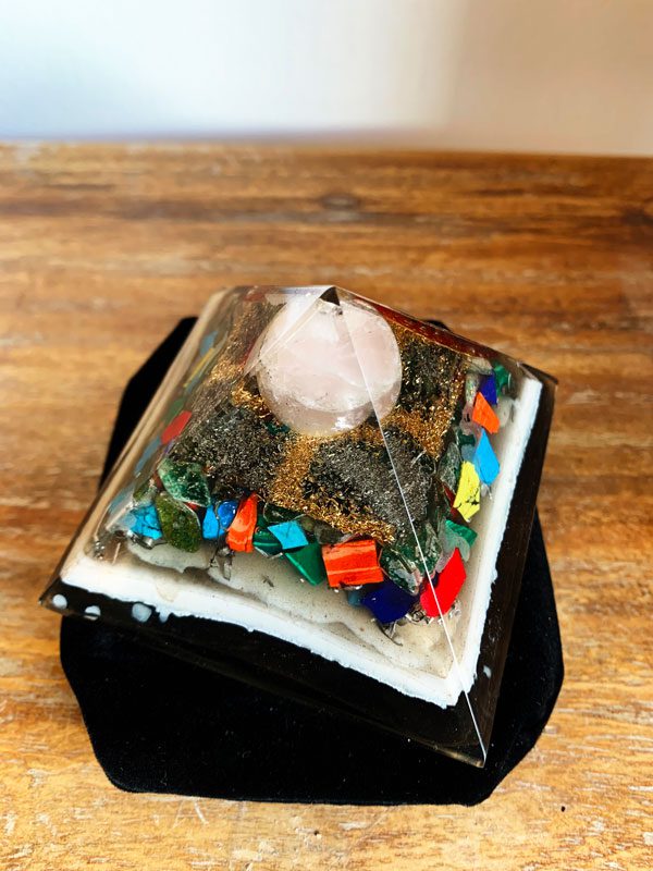 Orgonite pyramid gemstones at Gaia-Center in Cyprus.