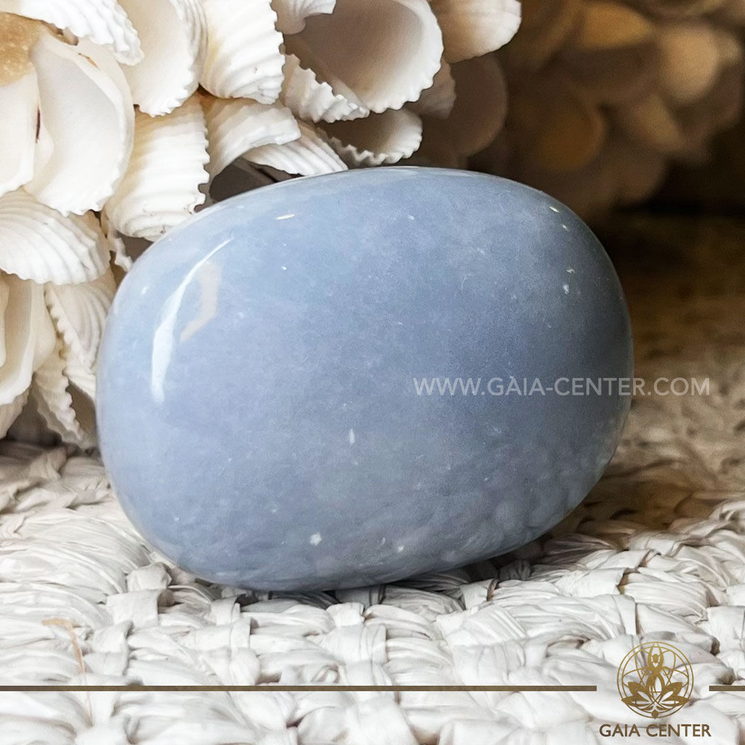 Blue Angelite Palm Stone, polished smoothstone from Peru at Gaia Center Crystal shop in Cyprus.