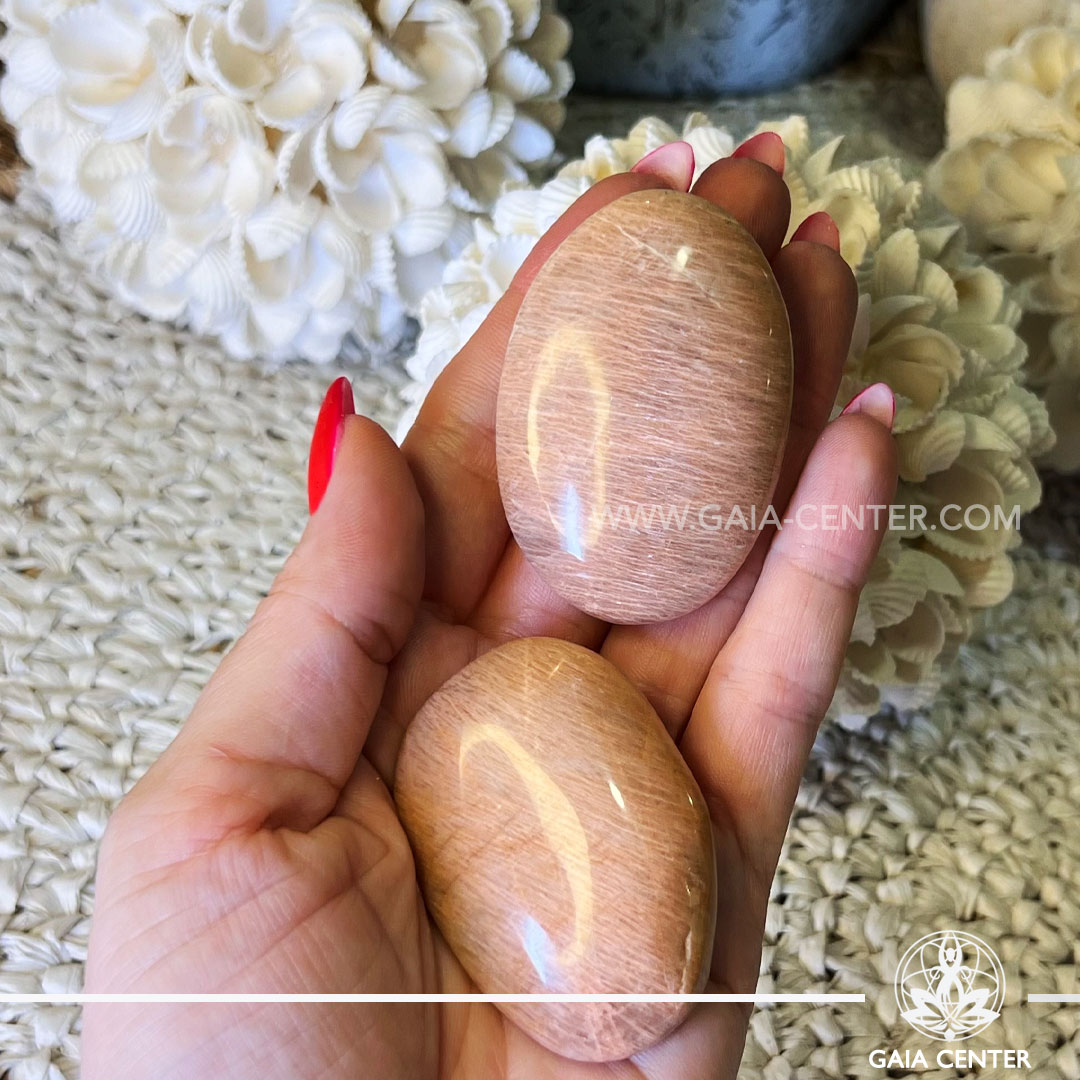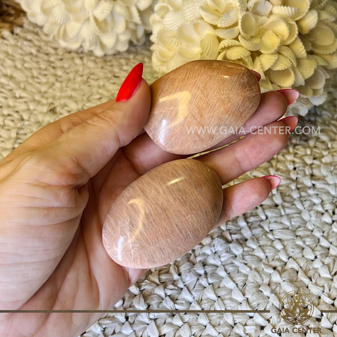 Pink Moonstone Palm Stone, polished smoothstone from MADAGASCAR at Gaia Center Crystal shop in Cyprus.