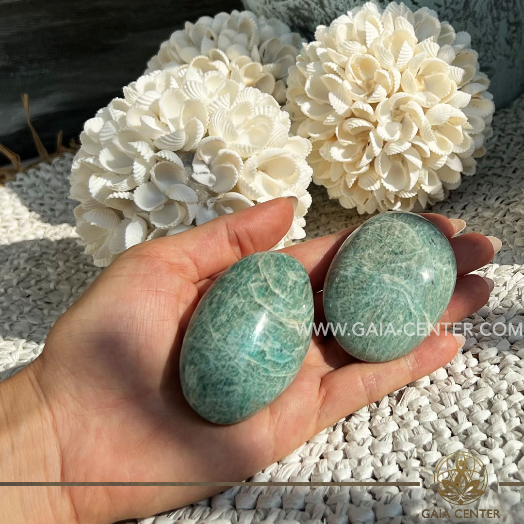 Amazonite Palm Stone Madagascar at GAIA CENTER Crystal Shop in CYPRUS. Crystal jewellery and crystal pendants at Gaia Center crystal shop in Cyprus. Order online top quality crystals, Cyprus islandwide delivery: Limassol, Larnaca, Paphos, Nicosia. Europe and Worldwide shipping.