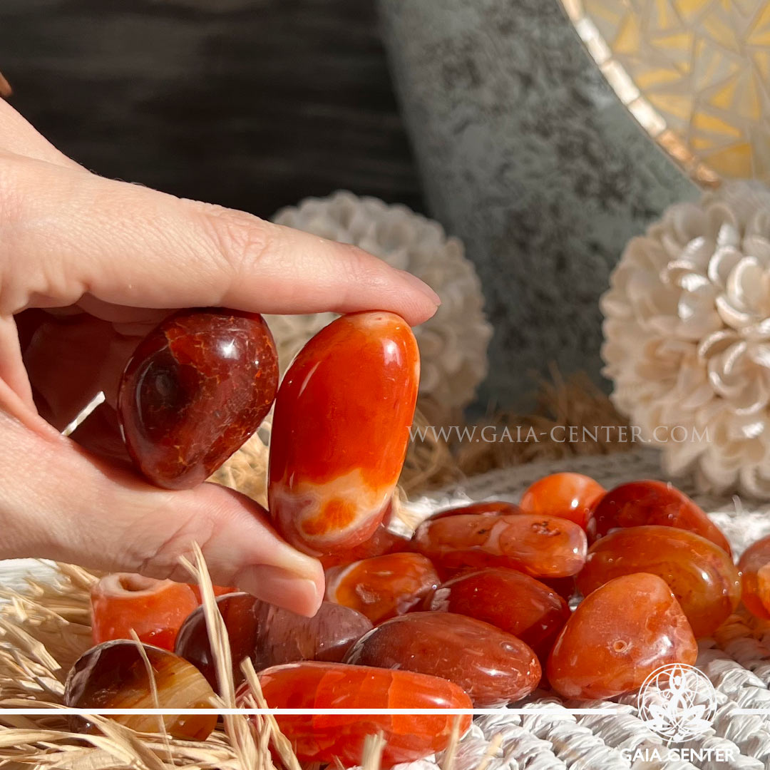 Read Morecrystals-tumbled-stones-red-carnelian-40-50mm-India-2pic-Gaia-Center-crystal-shop-Cyprus