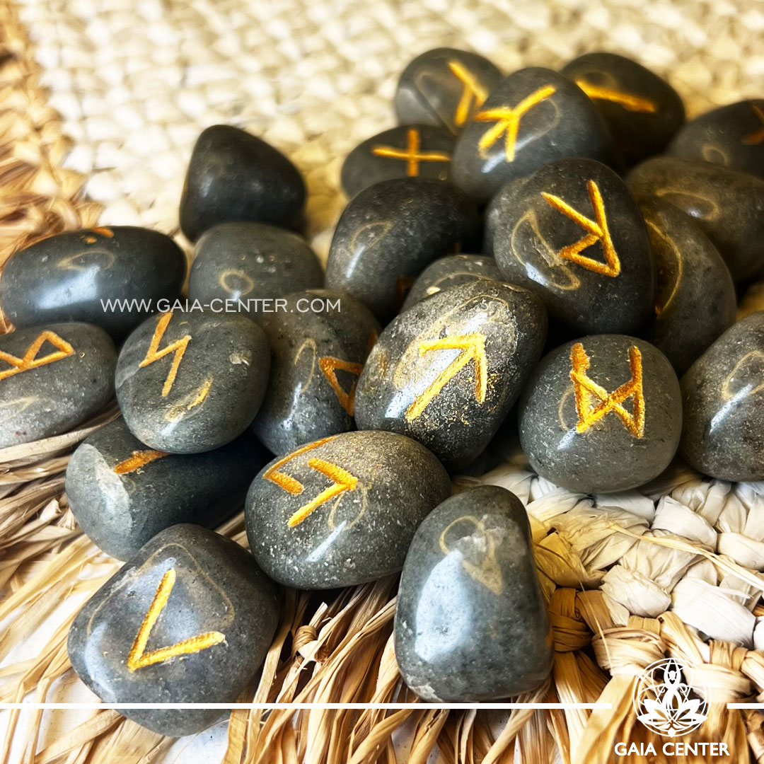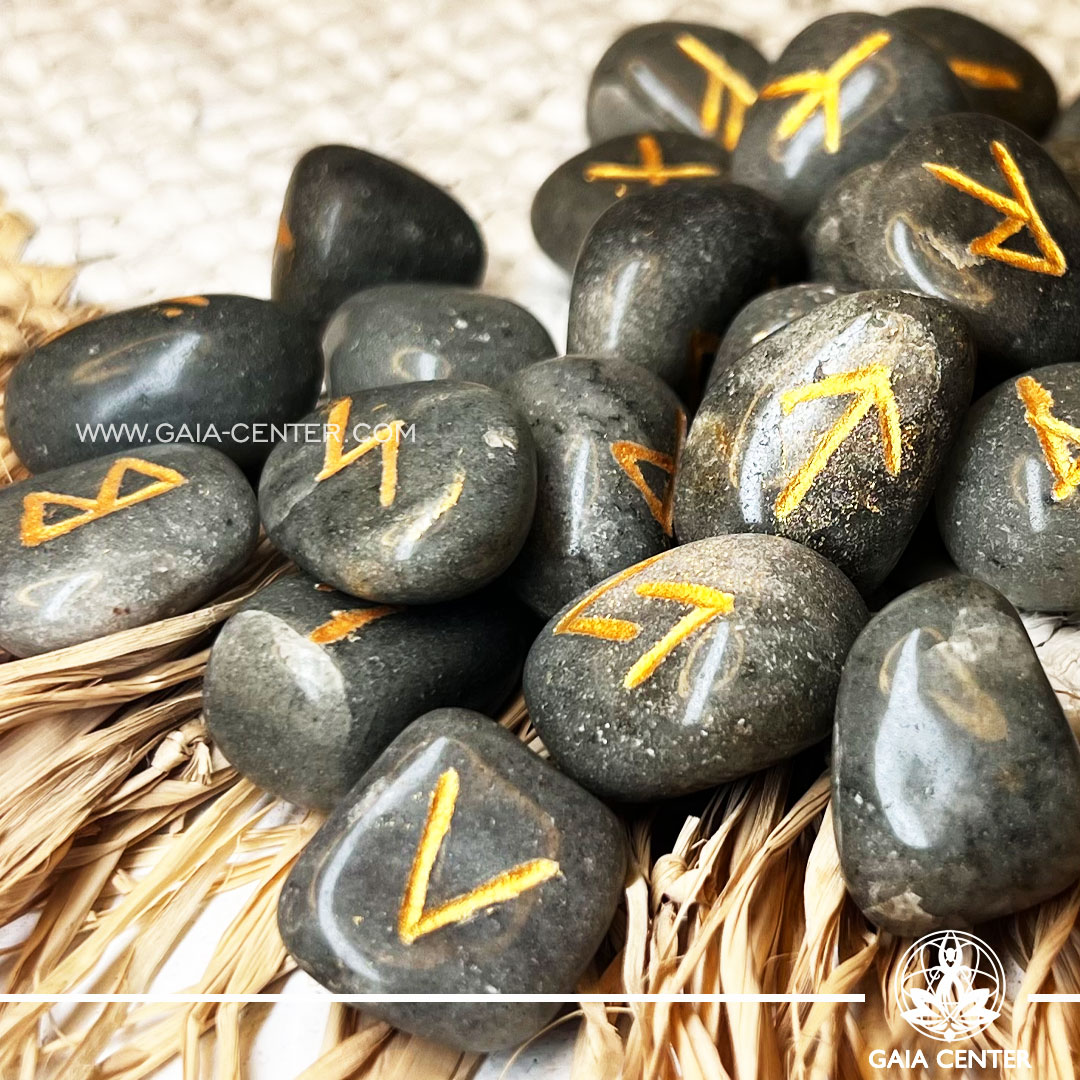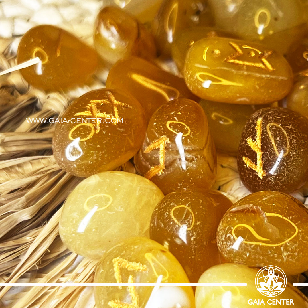 Crystal Rune Stones Yellow Onyx at Gaia Center Crystal shop in Cyprus.