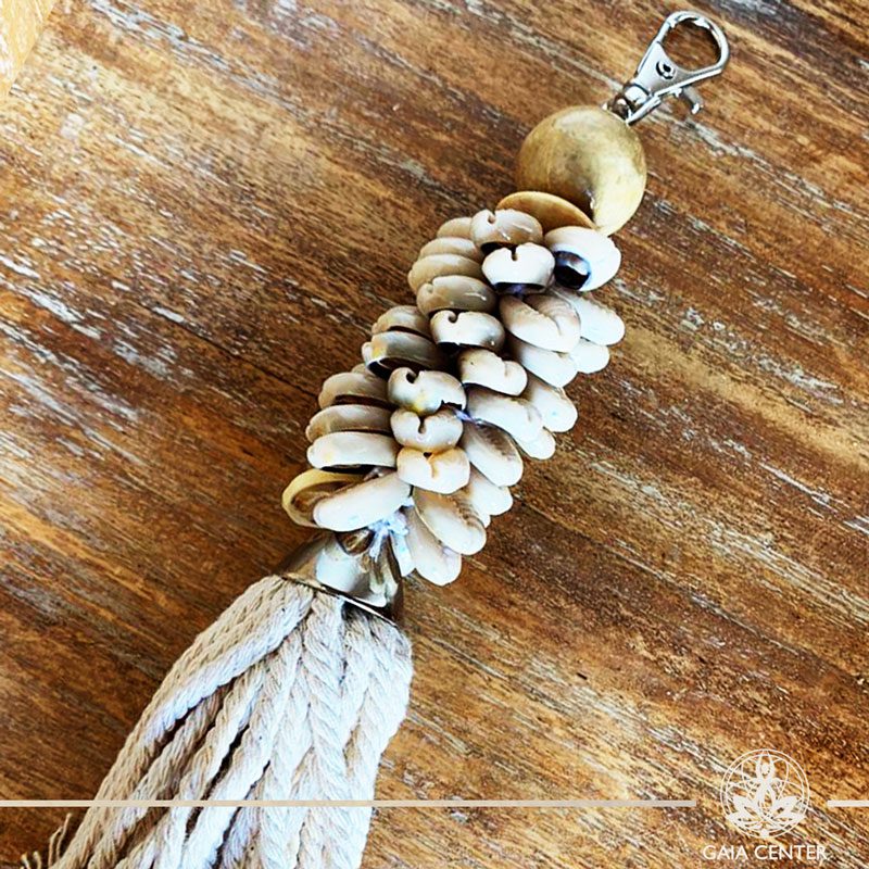 Natural seashell and cotton string key chain-charm at Gaia Center in Cyprus. Shop online at https://gaia-center.com. Cyprus and Worldwide shipping.