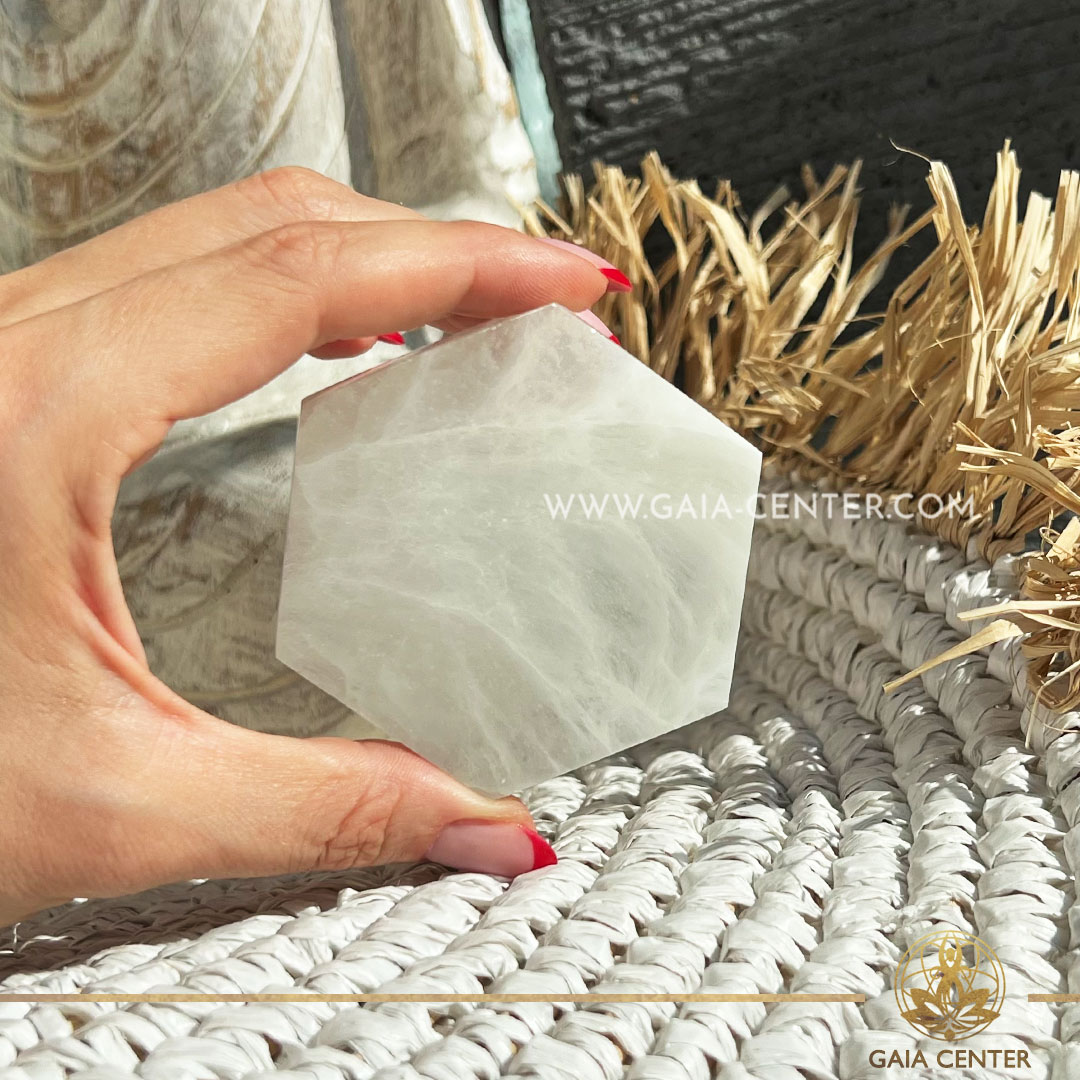Selenite Hexagon Charging Plate |small 7cm| at Gaia Center Crystal shop in Cyprus.