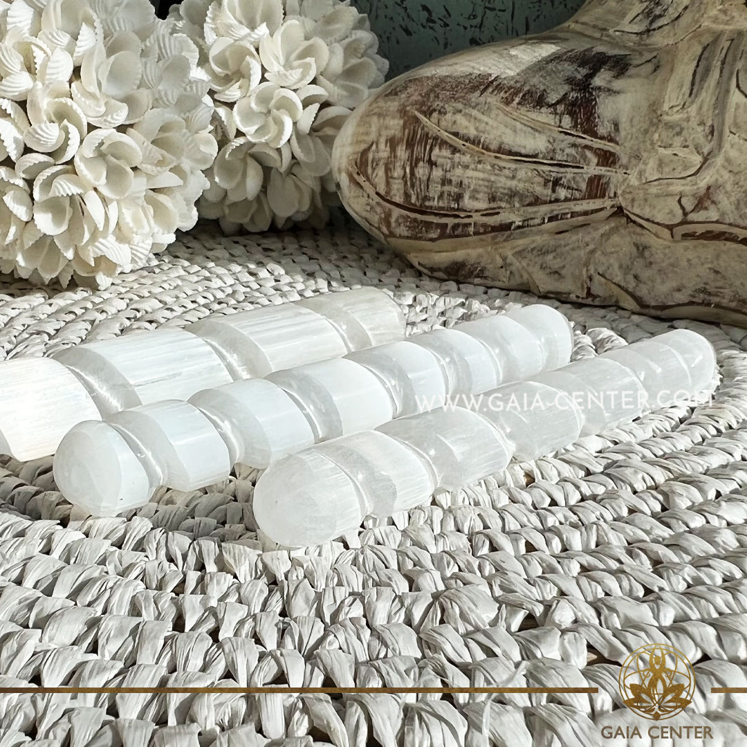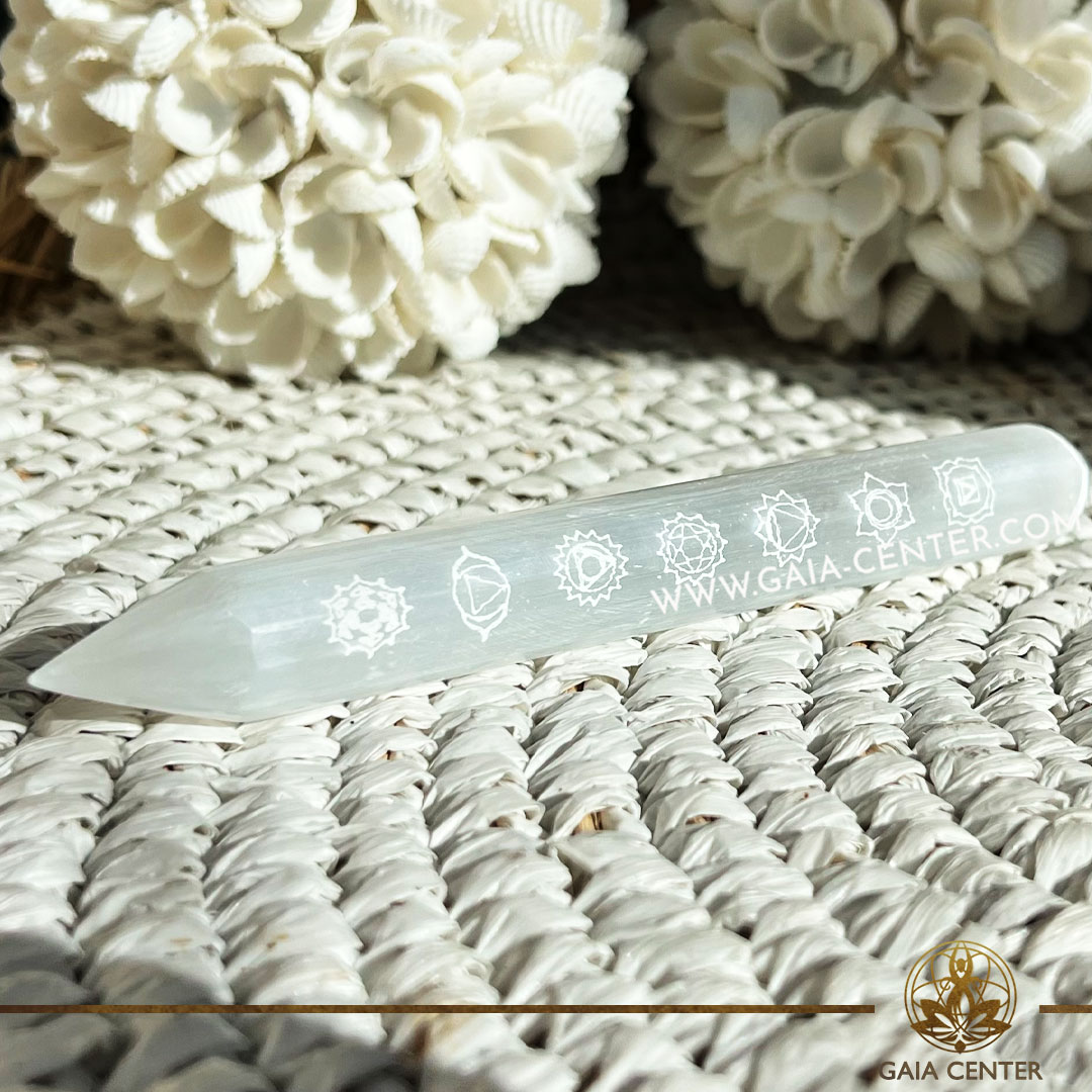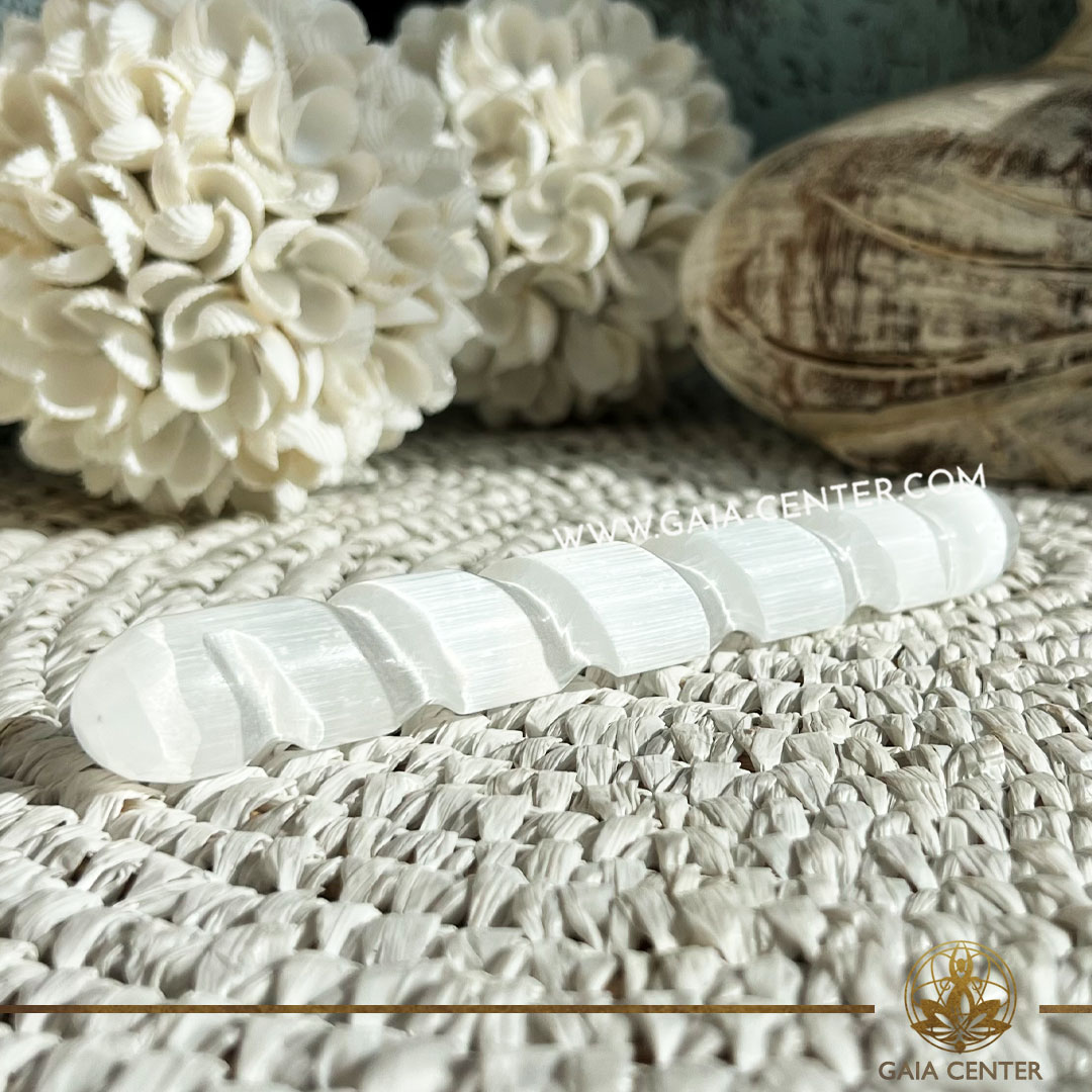 Selenite Chakras Crystal Healing Wand |75-95g| Morocco at Gaia Center Crystal shop in Cyprus. Crystal and Gemstone Jewellery Selection at Gaia Center Crystal shop in Cyprus. Order online, Cyprus islandwide delivery: Limassol, Larnaca, Paphos, Nicosia. Europe and Worldwide shipping.