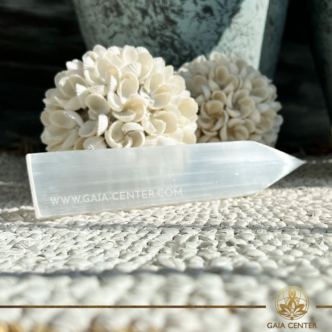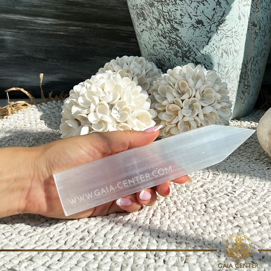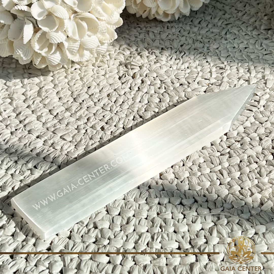 Selenite Flat Pointed Wand |20cm| from Morocco at Gaia Center crystal shop in Cyprus. Crystal tumbled stones and rough minerals, drusy at Gaia Center crystal shop in Cyprus. Order crystals online top quality crystals, Cyprus islandwide delivery: Limassol, Larnaca, Paphos, Nicosia. Europe and Worldwide shipping.